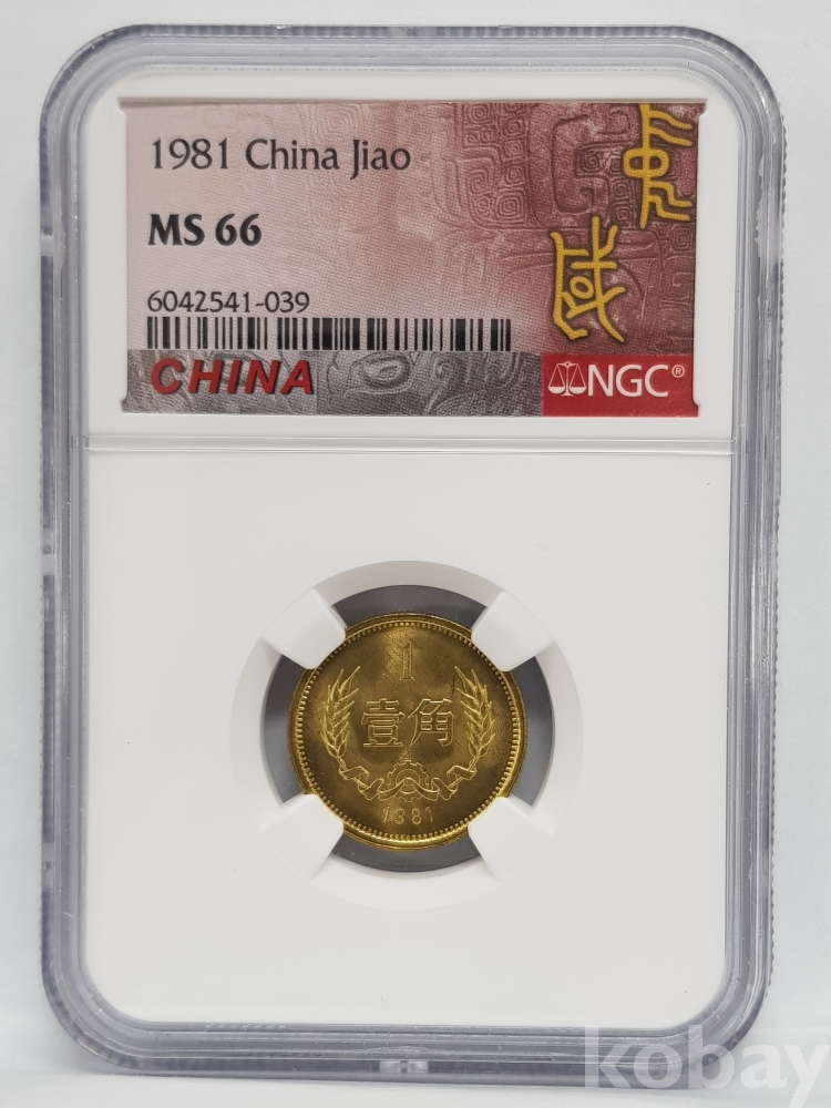 - 중국 1981년 1지아오 NGC MS 66 그레이딩 주화
