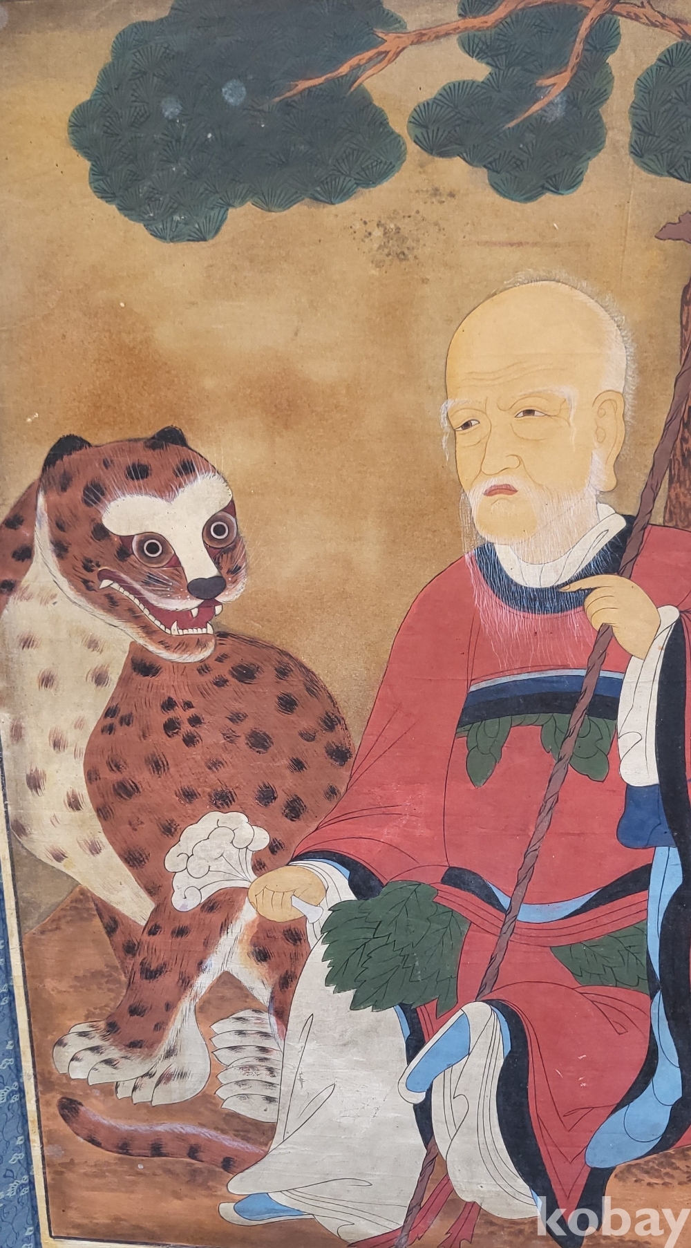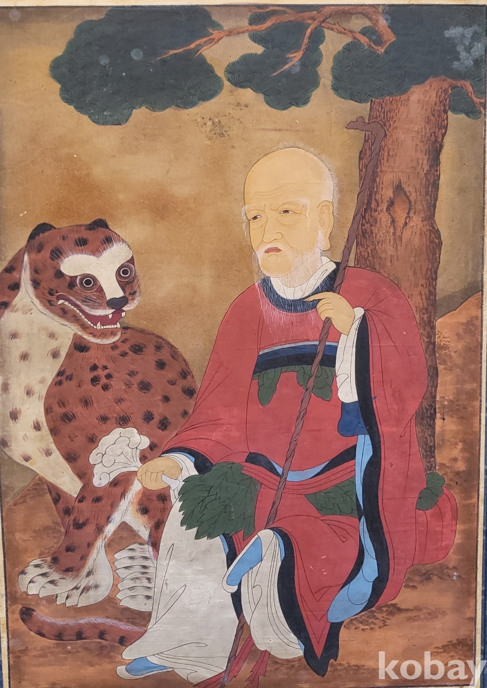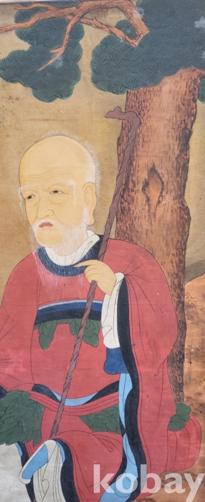 구한말 연대 갖춘 노방에 그려진 산신도(山神圖) 대작 입니다,