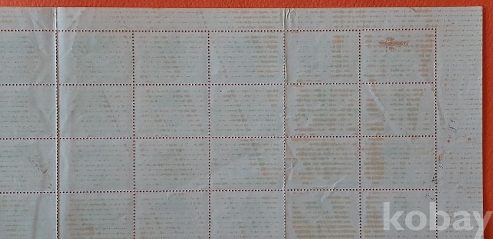 우변 변지부 찢김, 우상 변지부 천공터짐, 세로 반접힘, 풀자국 선명, 군데군데 구김 등 상태는 좋지 못합니다.