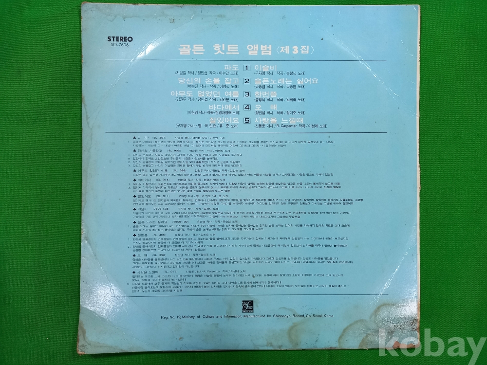VG : 생활 기스 다수, 가벼운 노이즈 존재 발매정보 알수없음 가사지여부
