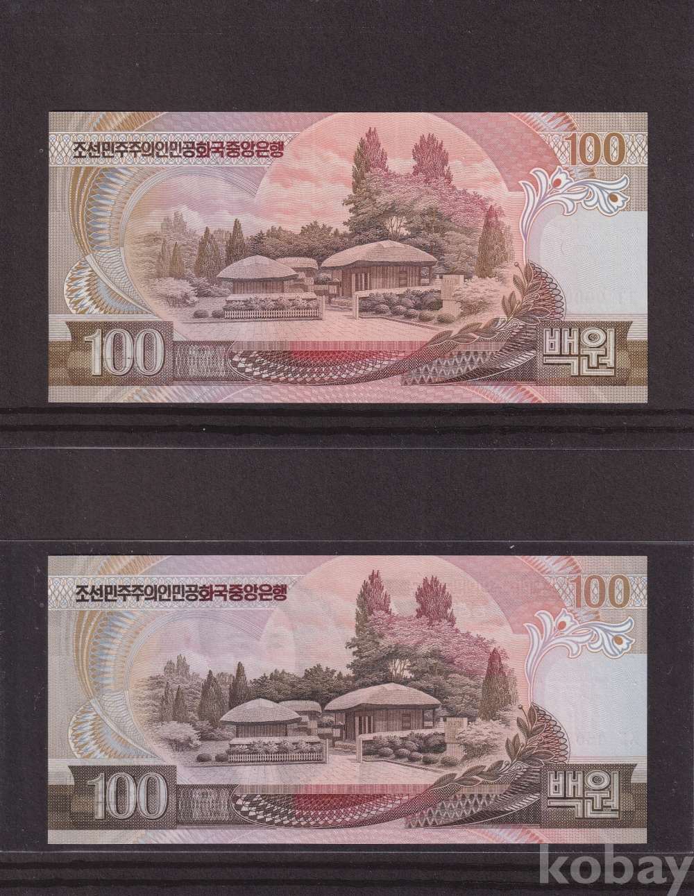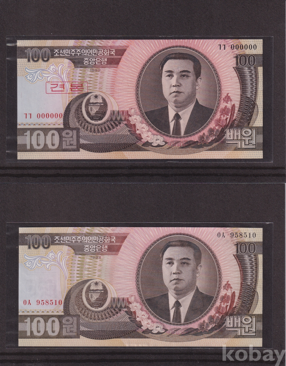 - 윗동네 1992년 백원 000 견본 / 백원 통용권 미사용 지폐 - 2장 일괄