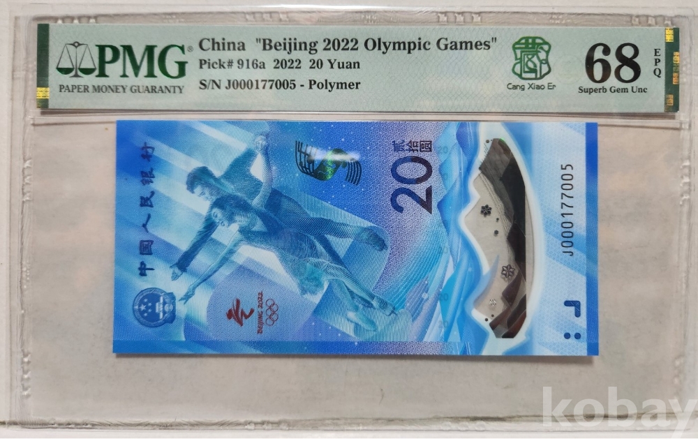 -2022년 중국 동계올림픽 기념 지폐 PMG68 고등급 입니다.