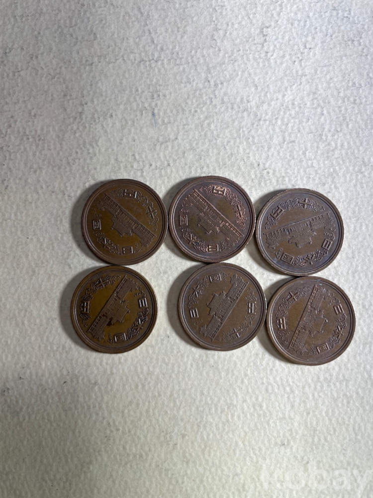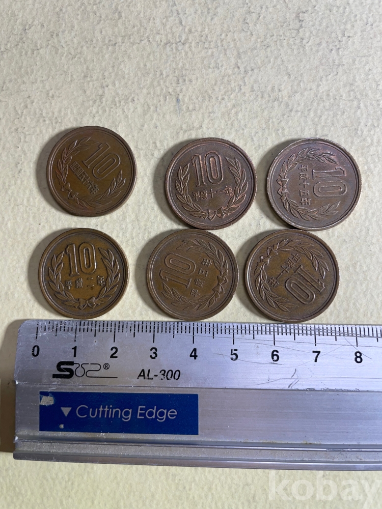 1951부터 발행된 일본 10엔 주화 6개입니다.