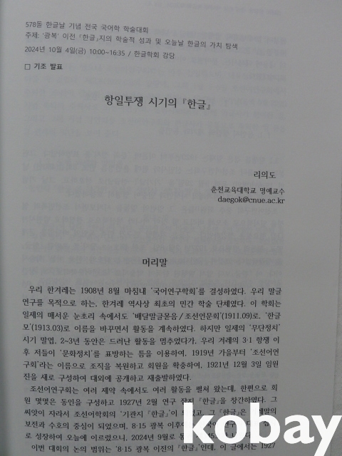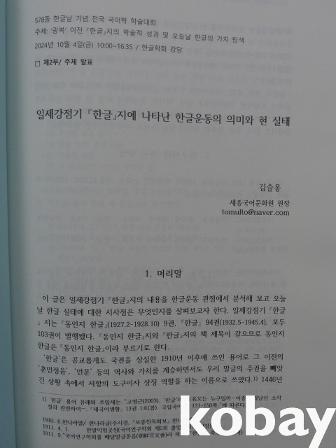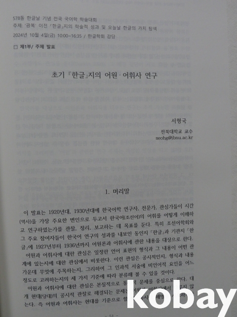 (『한글』誌) < 광복 이전 『한글』誌의 학술적 성과 및 오늘날 한글의 가치 탐색 > -2024년 한글날 기념 전국 국어학 학술대회-