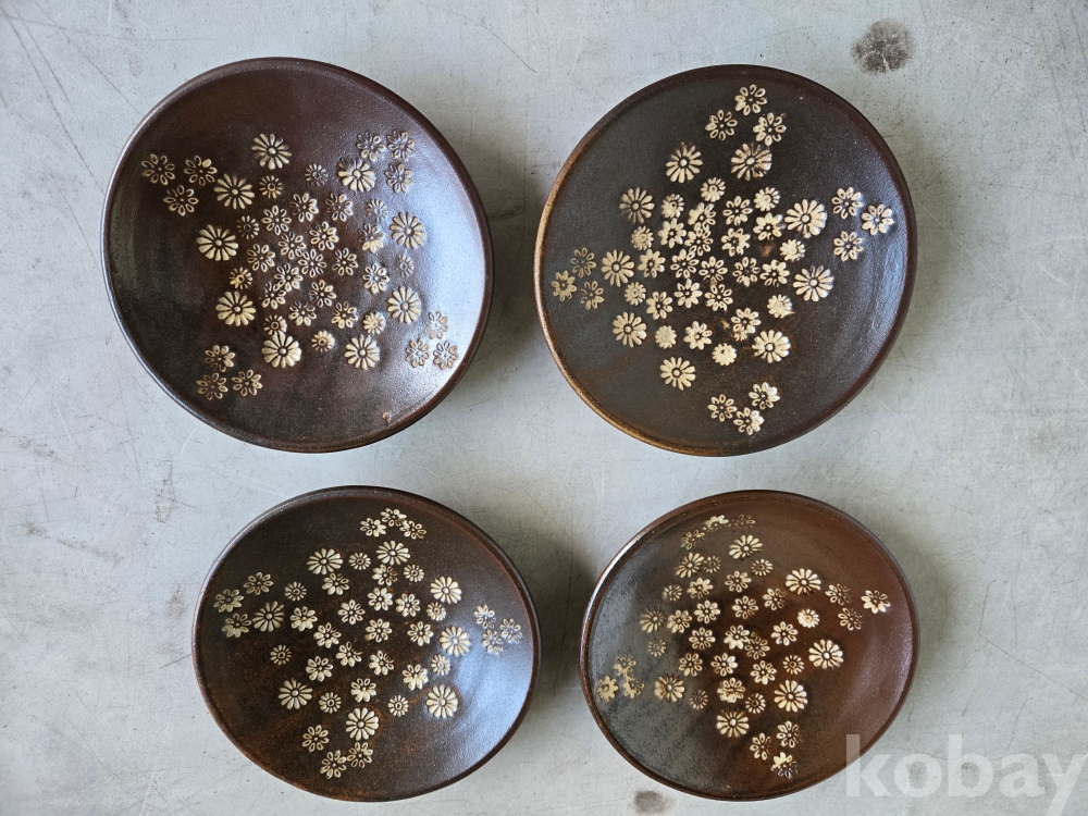 국화 문양이 음각으로 있는 접시 4개 입니다.