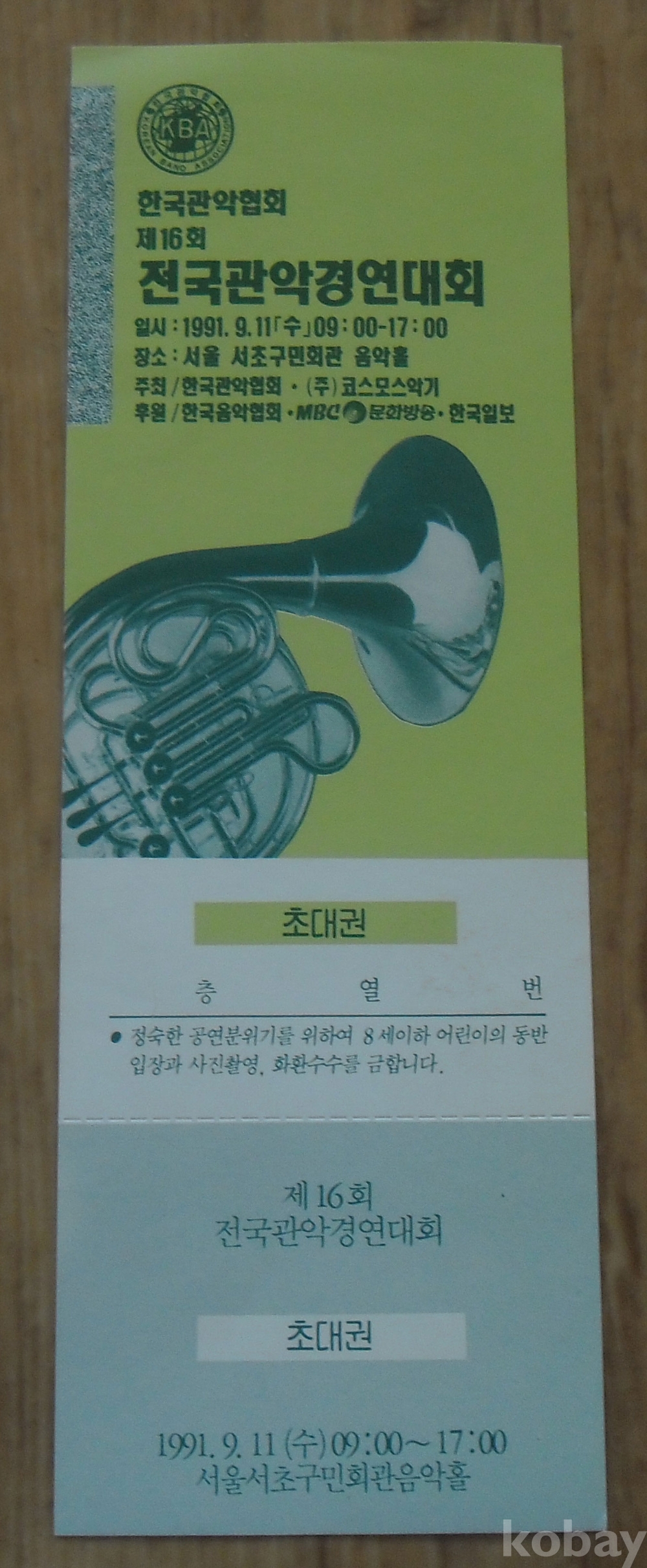 1991년 전국관악경연대회 초대권
