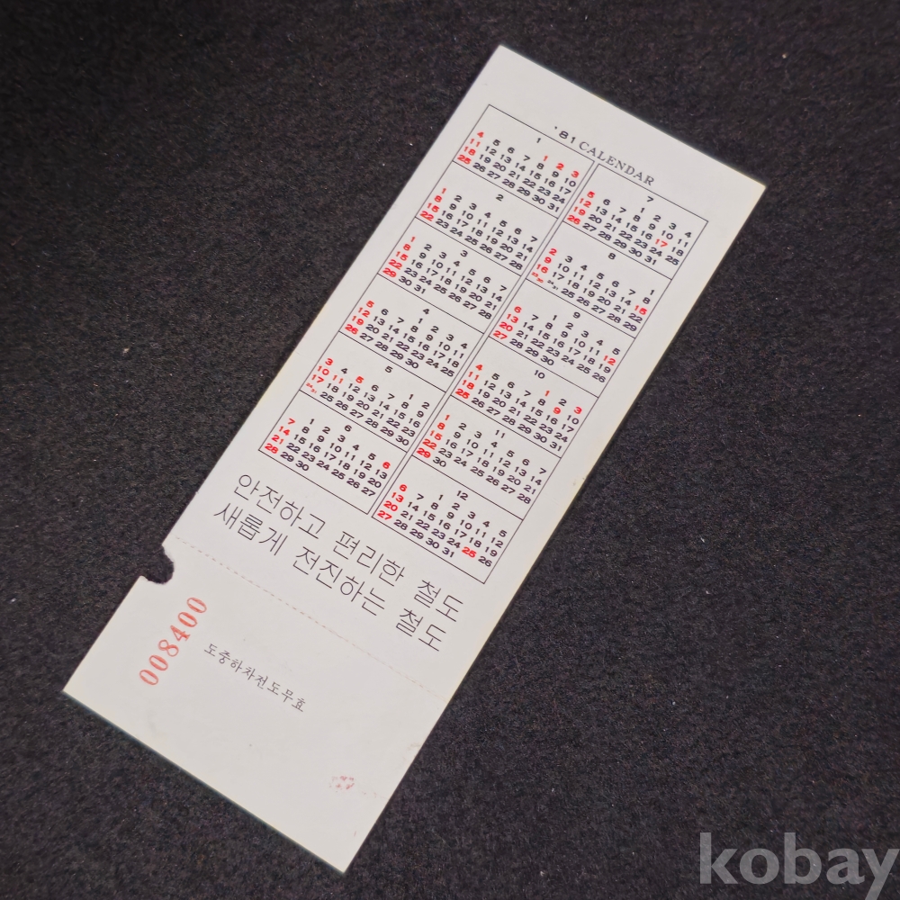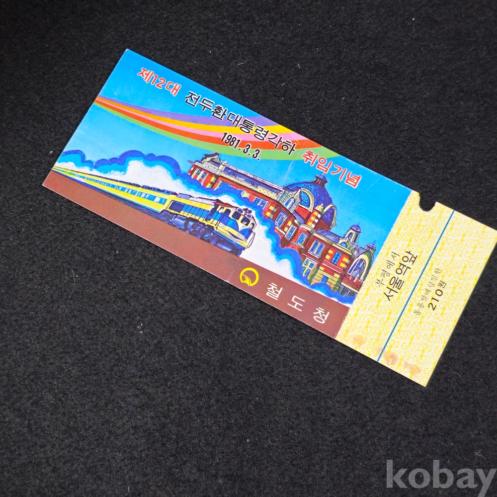 (((철도자료/지하철자료/대통령자료))) 제12대 전두환대통령각하 취임기념 지하철 승차권 (철도청)(부평에서 서울역앞) (1981)(미사용) (210원) (1981년 달력)