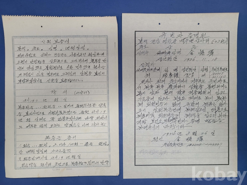고발장,주민등록분실신고서,이력서,병적증명원서,자술서,하천부지점용에 대한 이의신청,