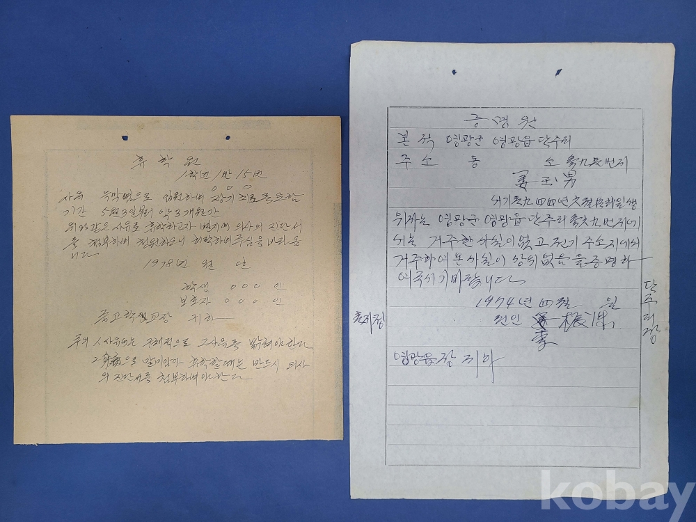 [靈光 자료] 산주등록신고서,소개영업신고,휴학원 등 35여부 일괄/