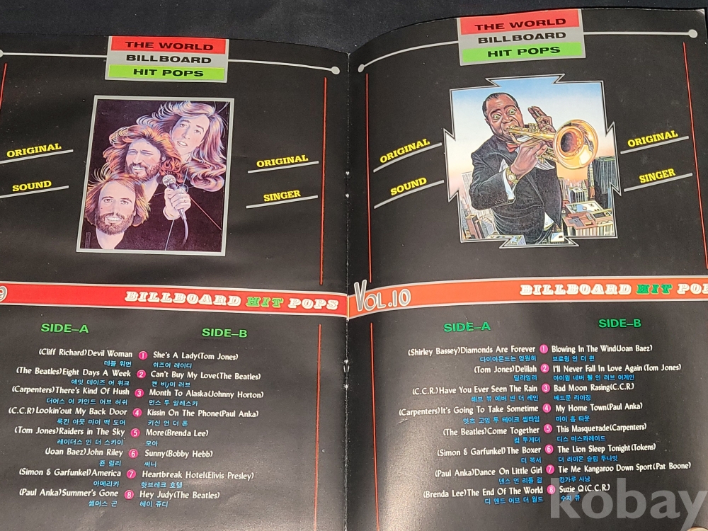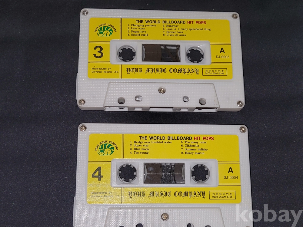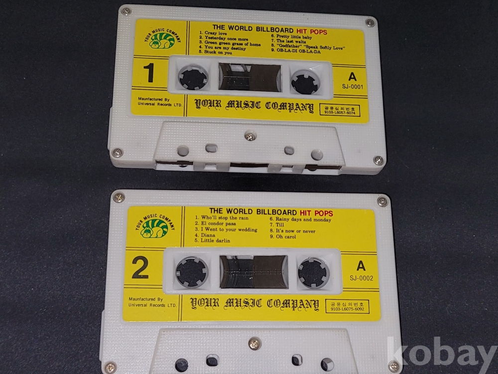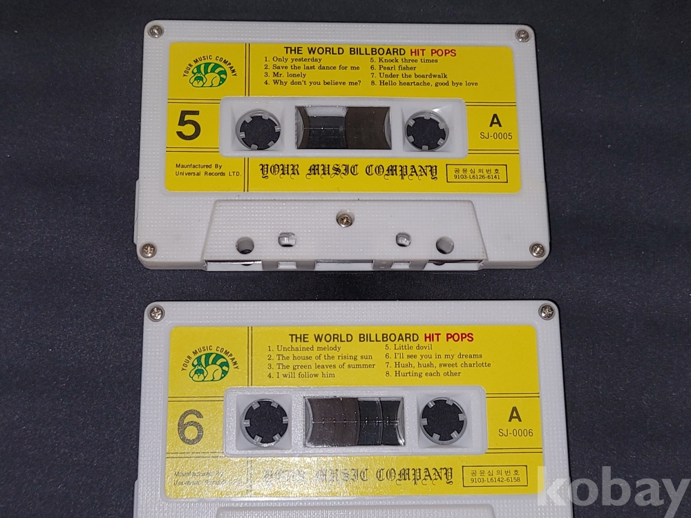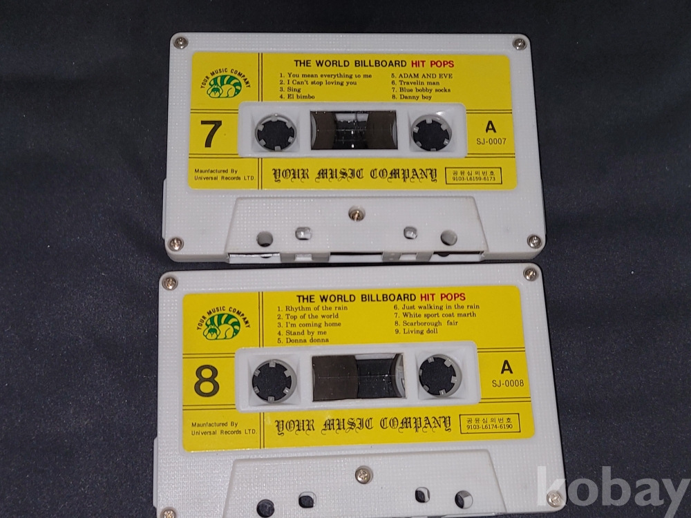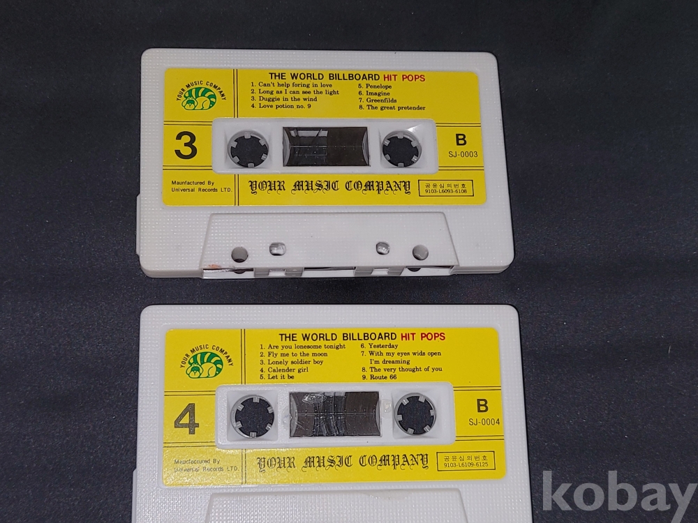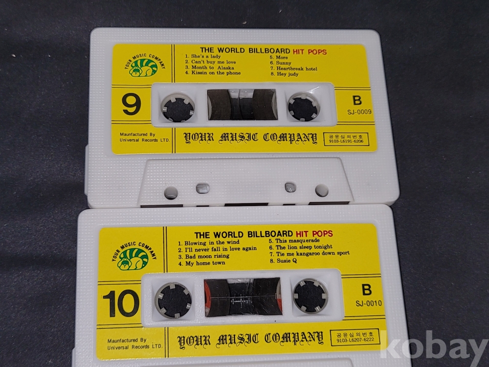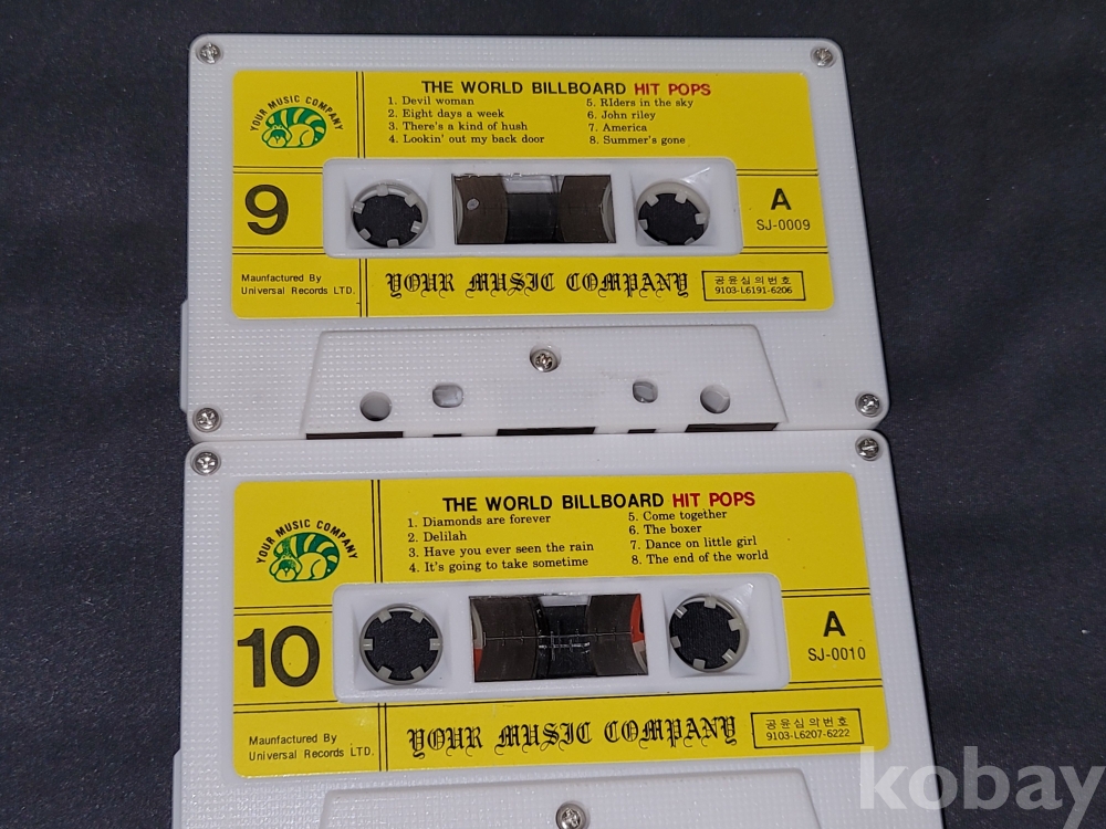 빈티지 세월 감이 느껴지는 빌보드 히트 팝송(The World Billboard Hit Pops) 노래 카세트테이프 10개 세트 일괄입니다.