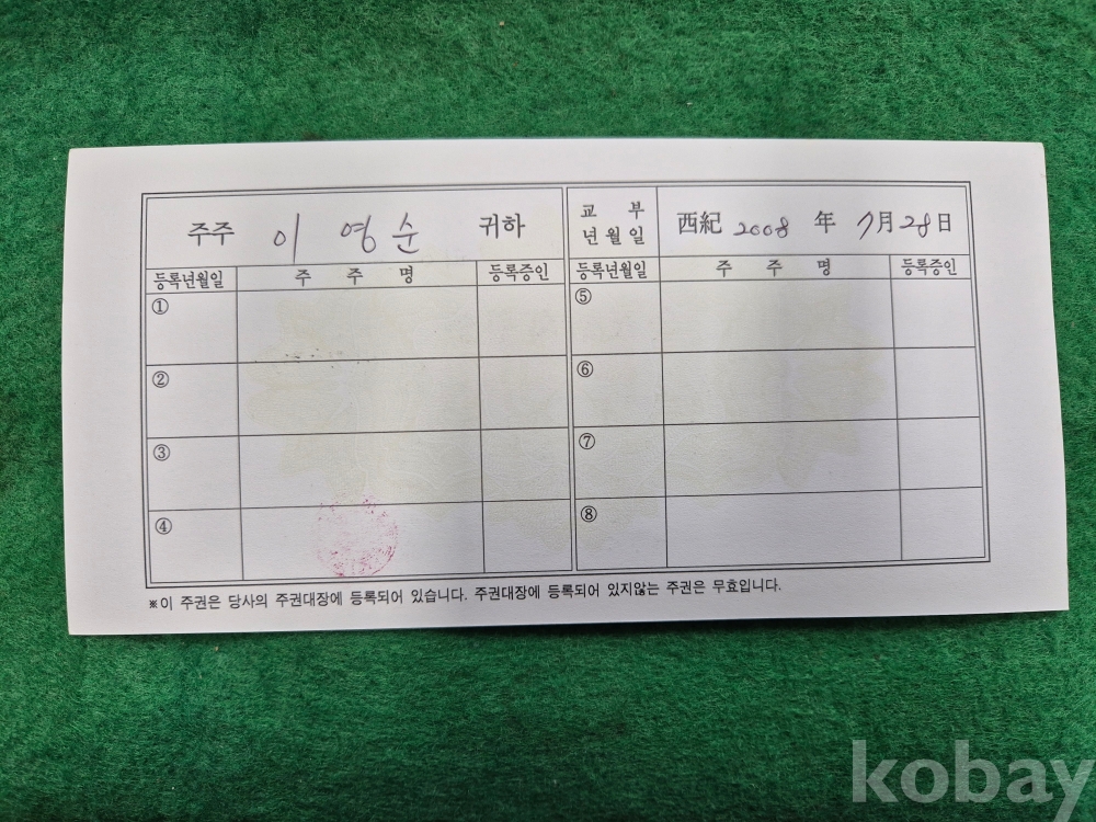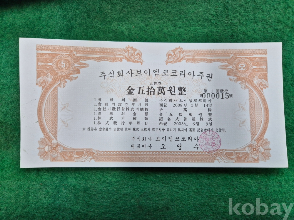주식회사 브이엠코코리아주권 5주권(제 1회, 500,000원)