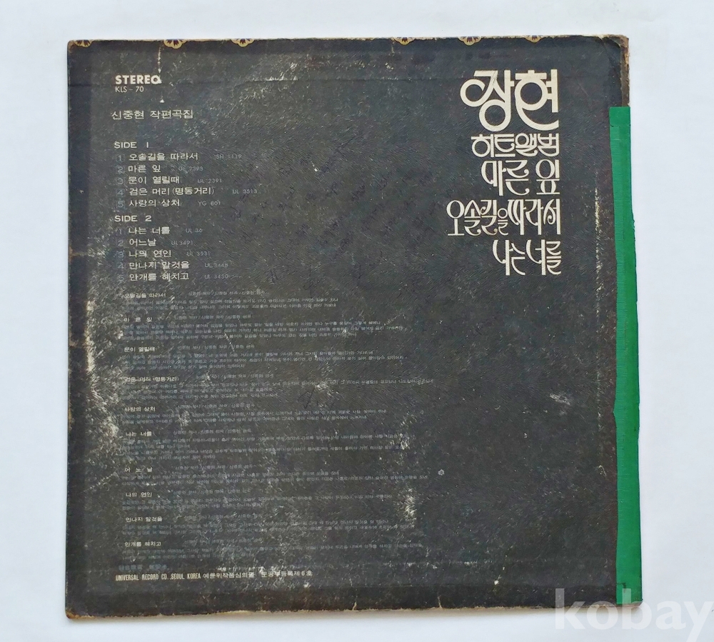 EX : 약간의 마모, 모서리 찢김 존재 음반상태