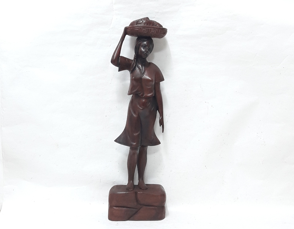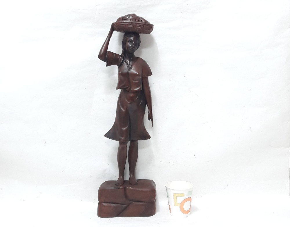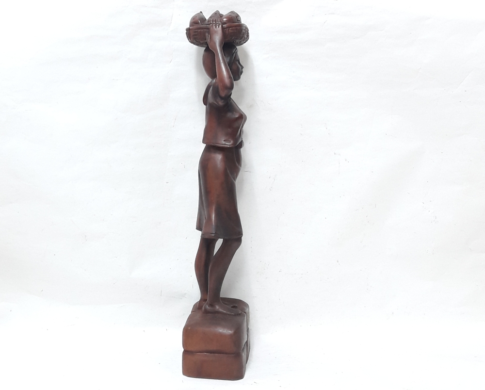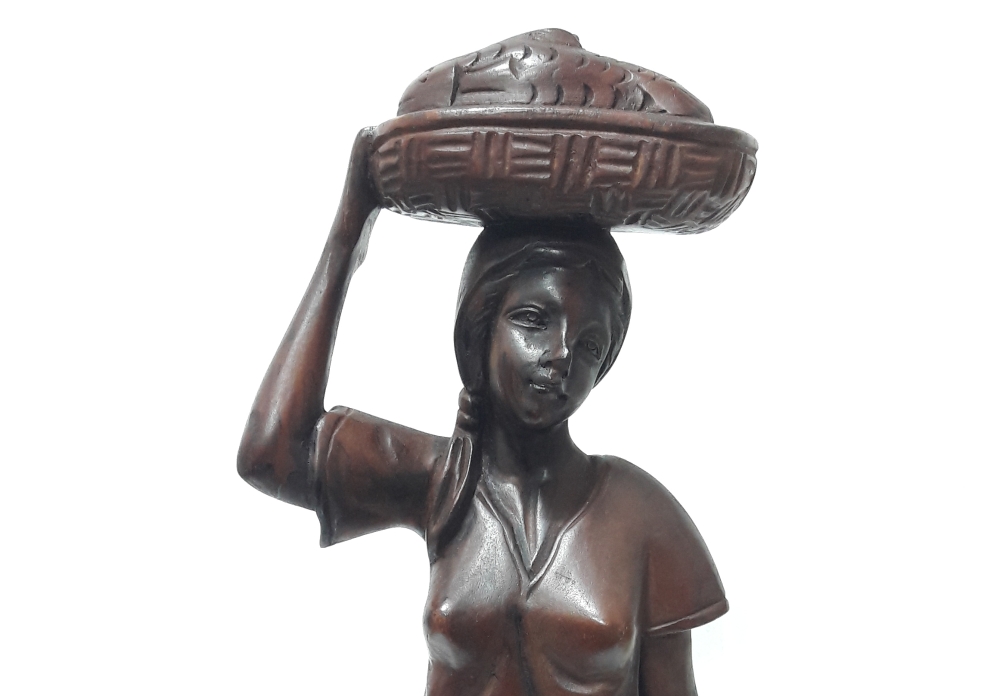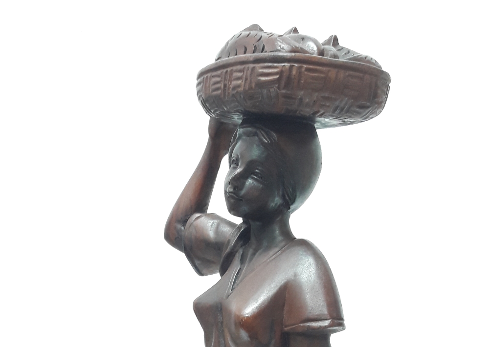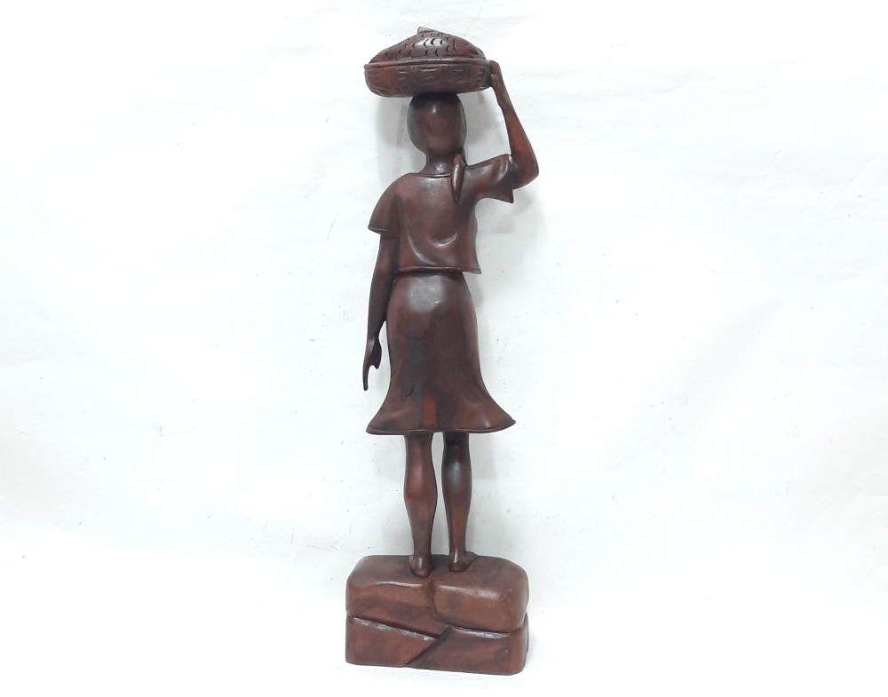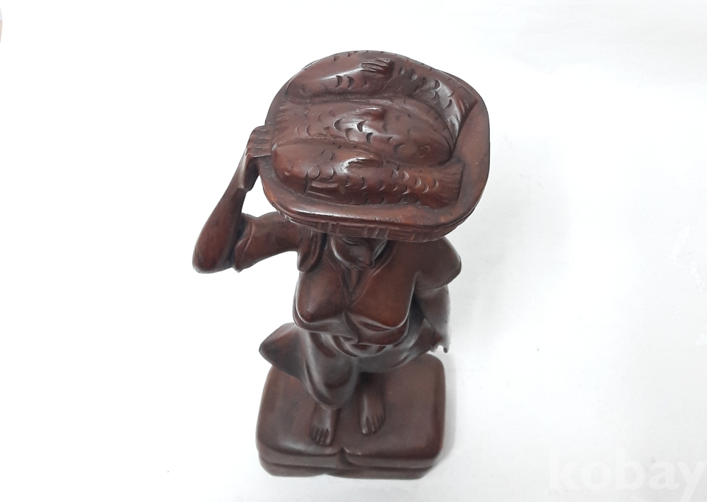 생선을 지고가는 여인 목각상
