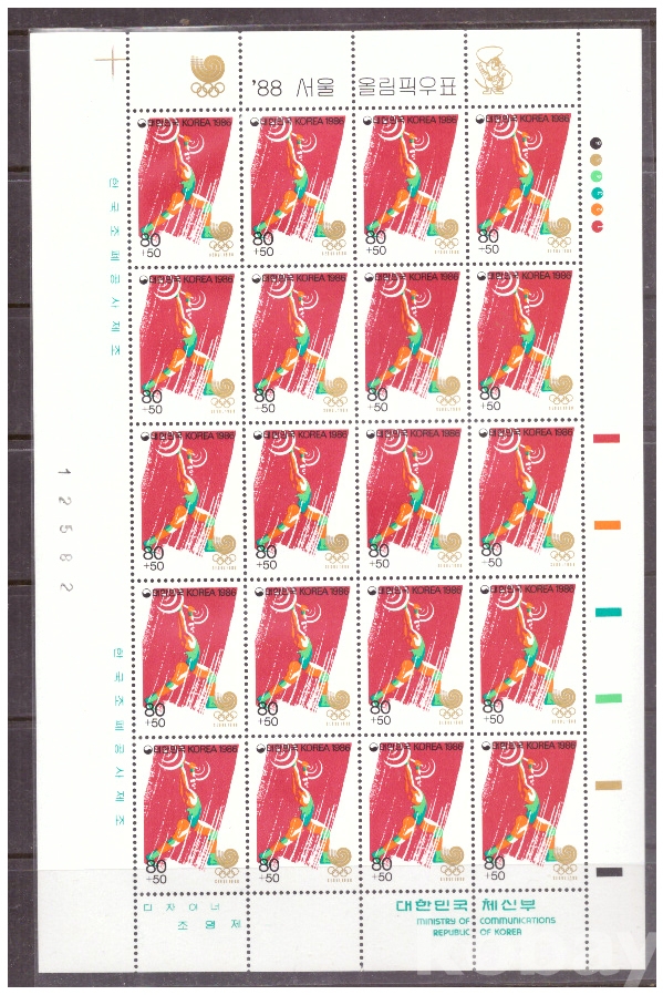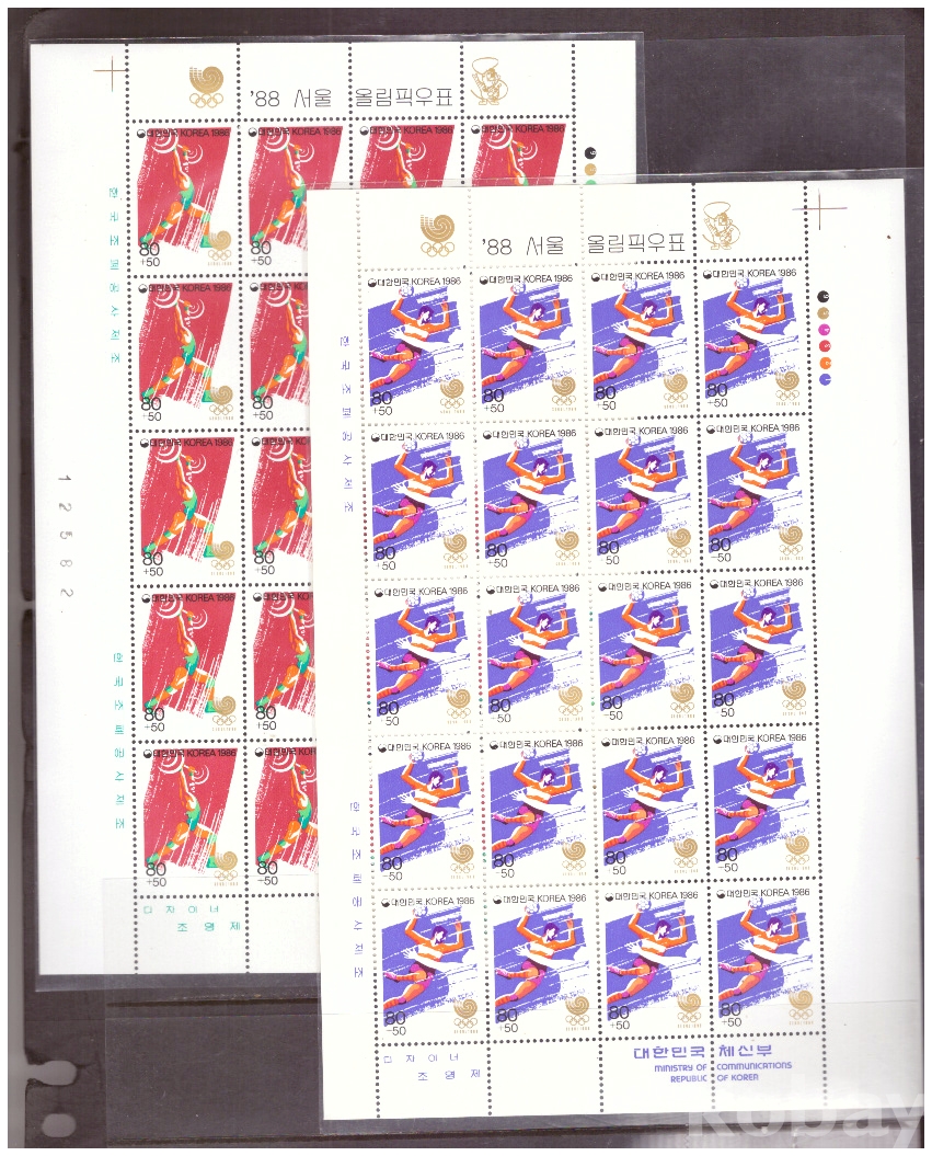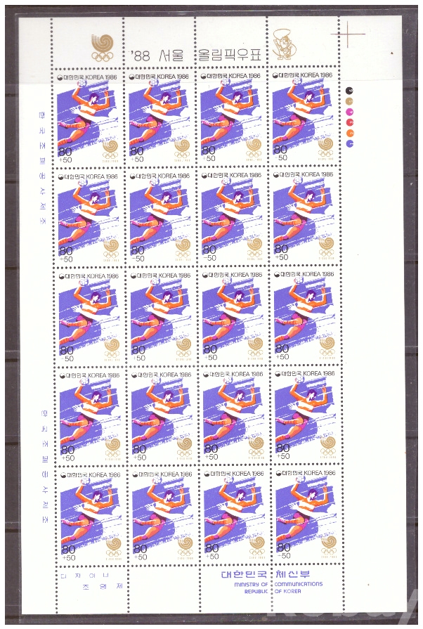 (서울올림픽) 1986.10.10 '88 서울올림픽(제6집) 2완 sheet of 20 MNH