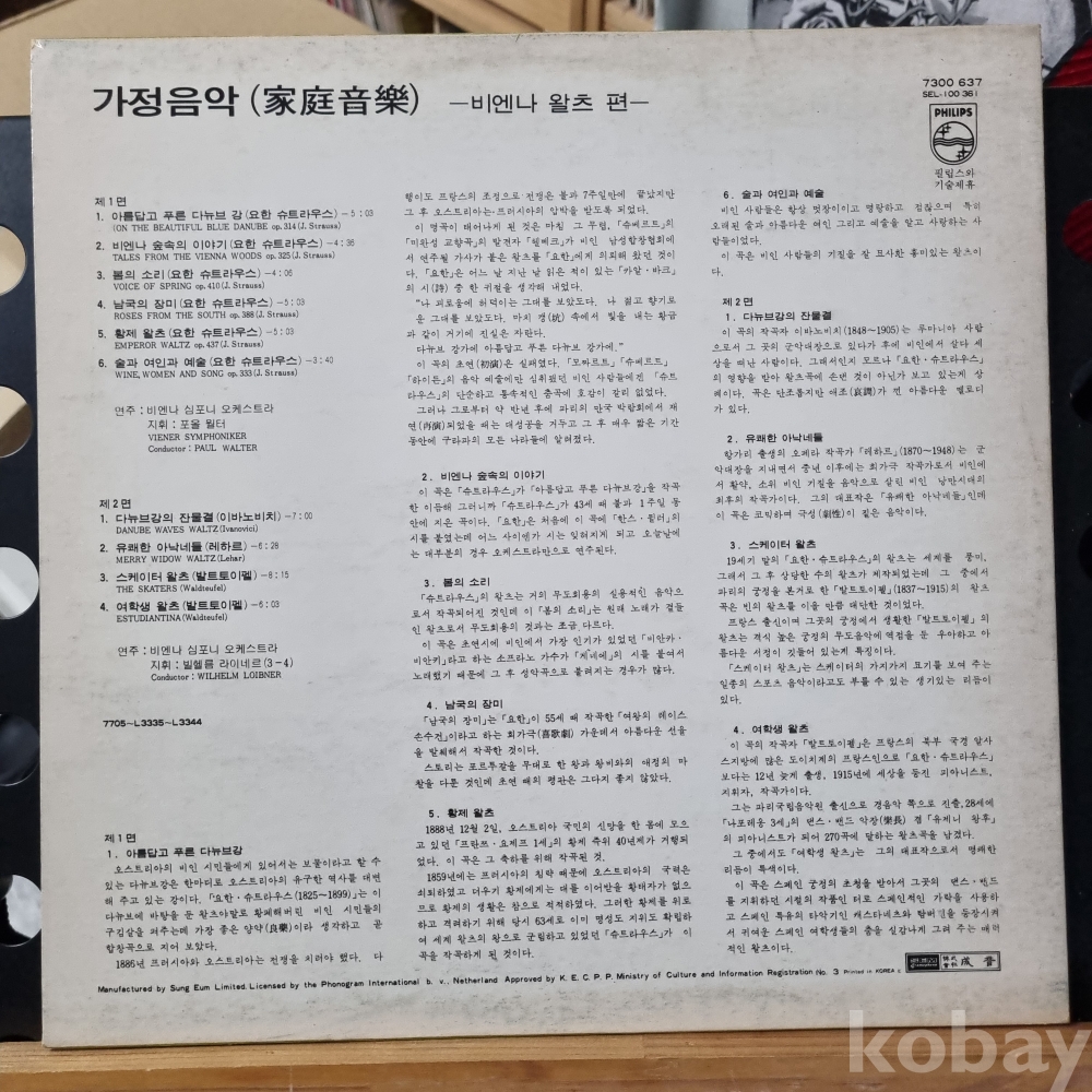 가정음악 - 비엔나 왈츠- 성음 PHILIPS 1977년