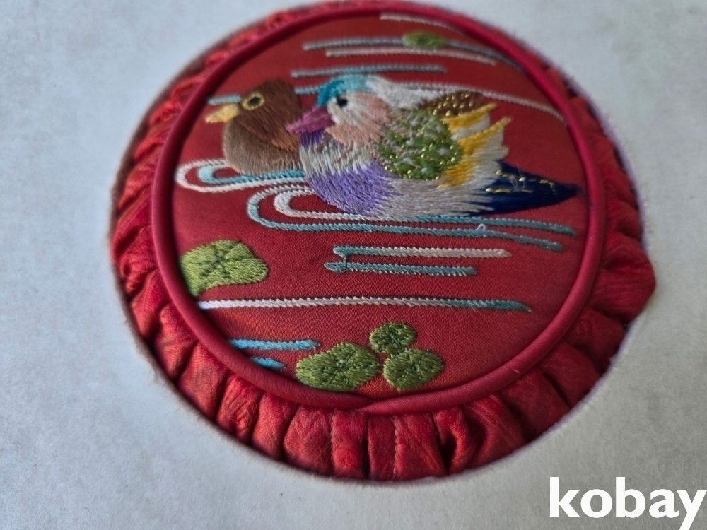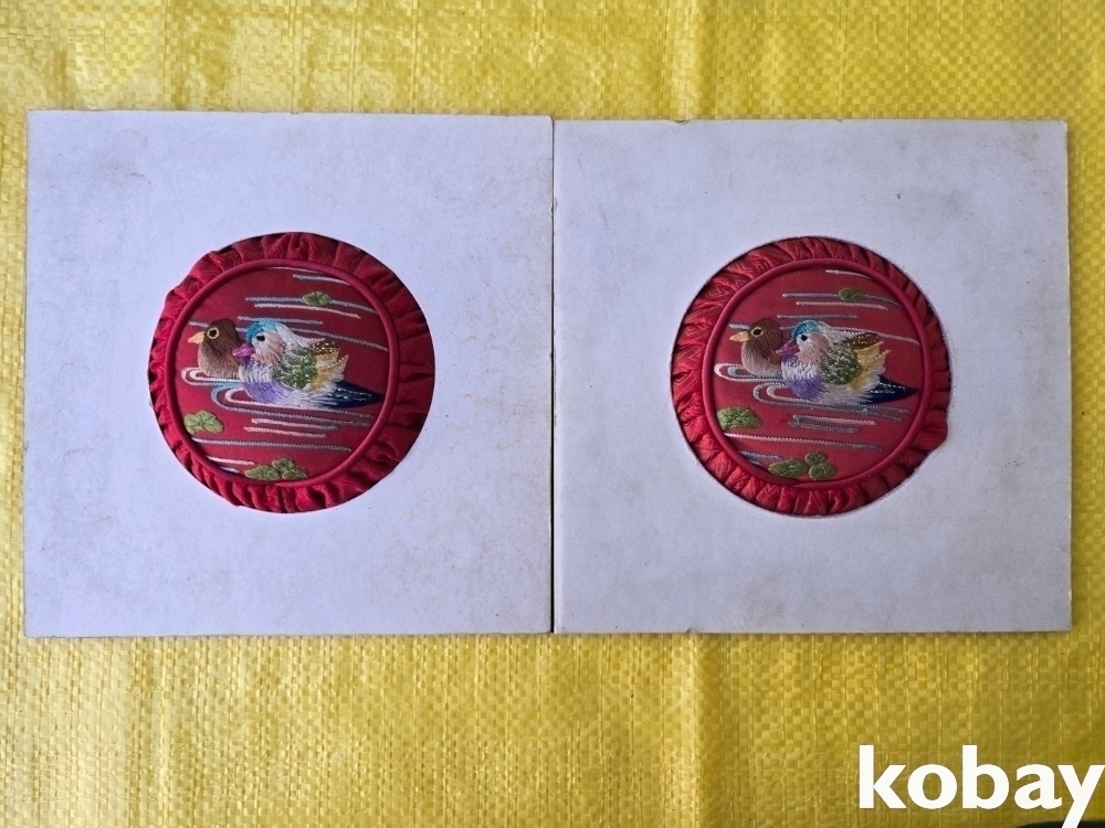 원앙 한쌍을 정성스럽게 자수한 것으로 상태 좋습니다.