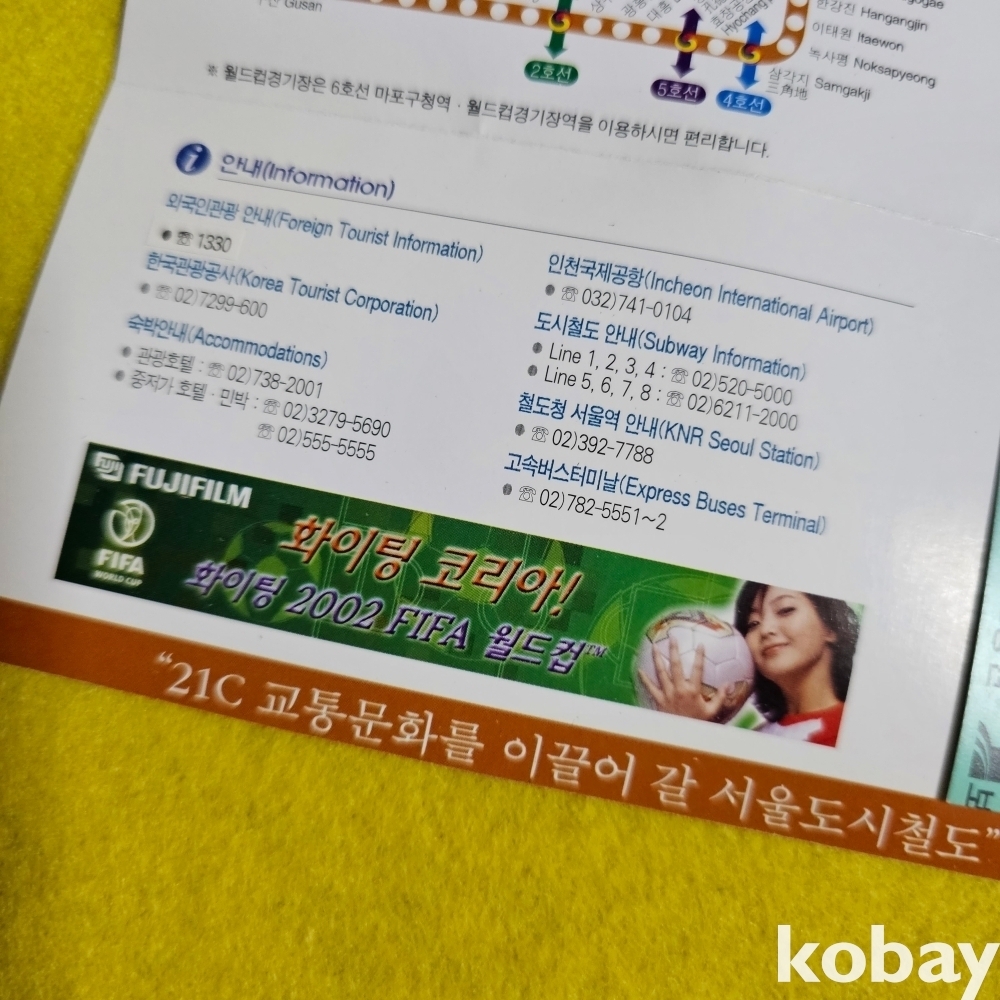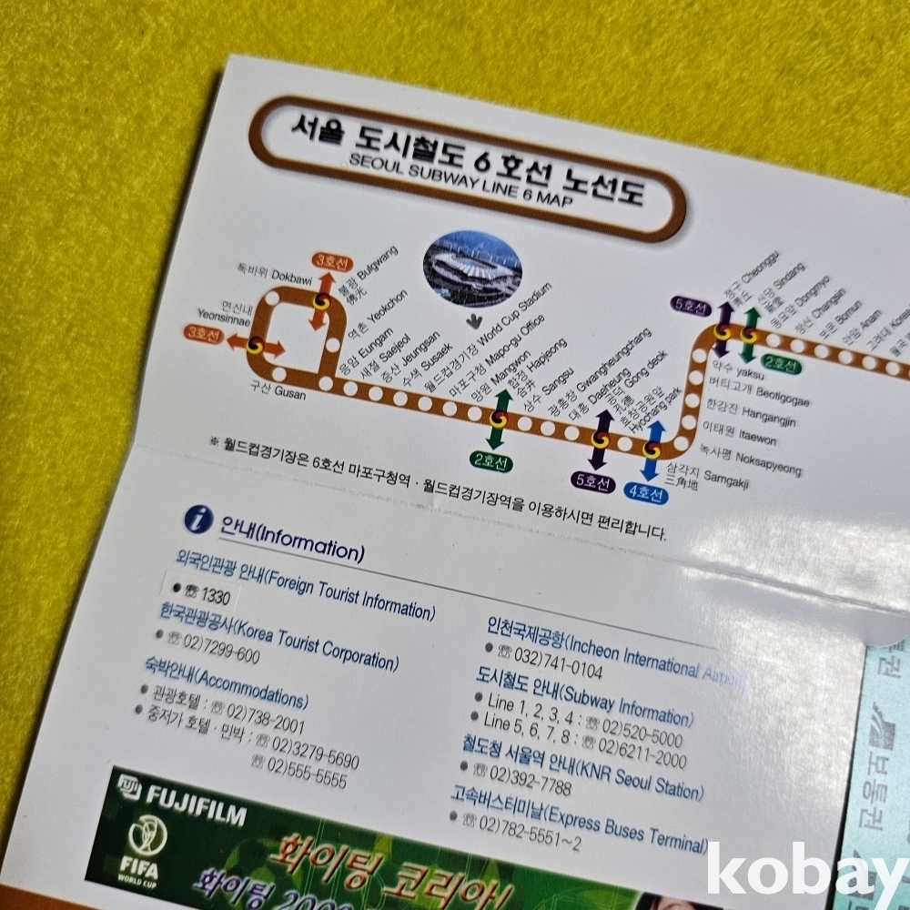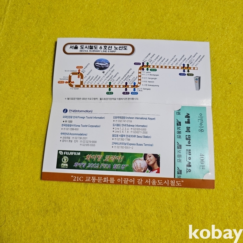 (((철도자료/지하철자료/월드컵자료))) 경축 2002 월드컵기념승차권이들어있는 서울 도시철도 6호선노선도 (서울특별시도시철도공사)(어린이용)