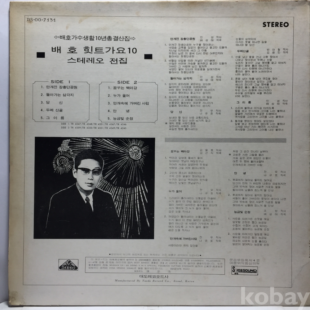 LP 810,700-6 배호 힛트가요 10 - 안개낀 장충단공원 자켓 EX+ 알판 EX 72 년 국내반