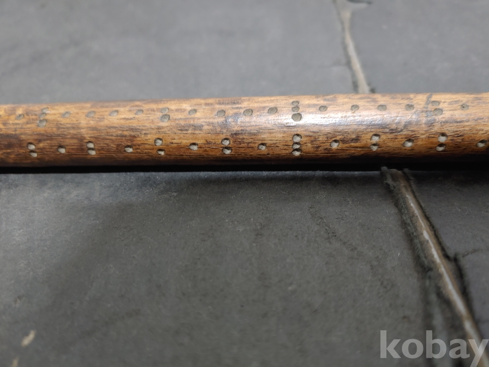 ""글씨가 있는 귀한 도자기 저울추와 눈금이 4줄로 촘촘한 나무저울""