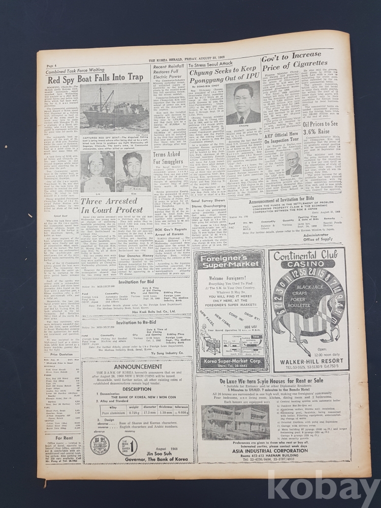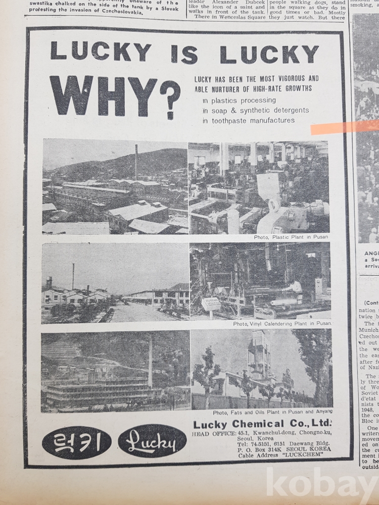 **** 1968.08.23(코리아헤럴드)/럭키유지공업주식회사 광고포함/약 4면