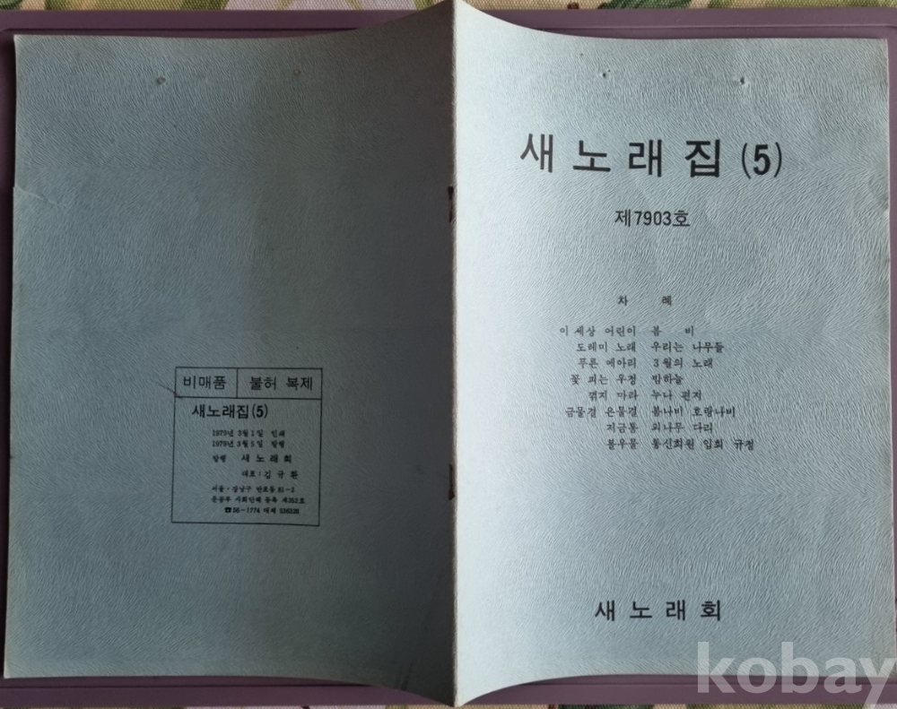 새노래집5 제7903호-1979. 3. 5 새노래회 발행