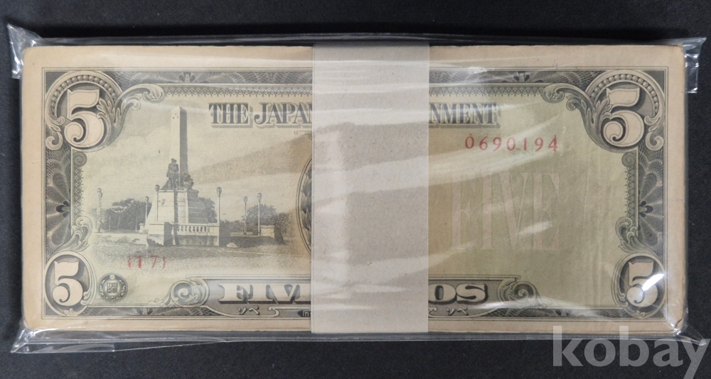 - 태평양 전쟁 일본 군표 5페소 필리핀 사용 약 100장 다발- 군용 수표