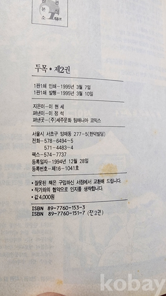 두목, 1-2 합본 완결, 이현세 그림, 팀매니아