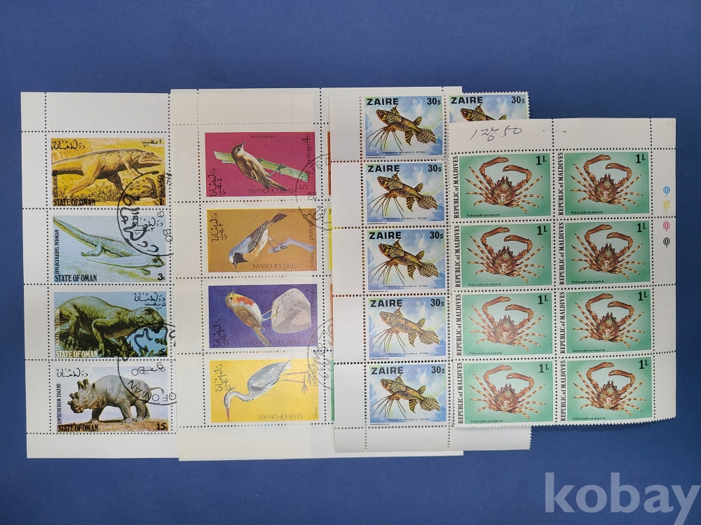 동물,조류,해양생물 우표(자이르,몰디브,오만)