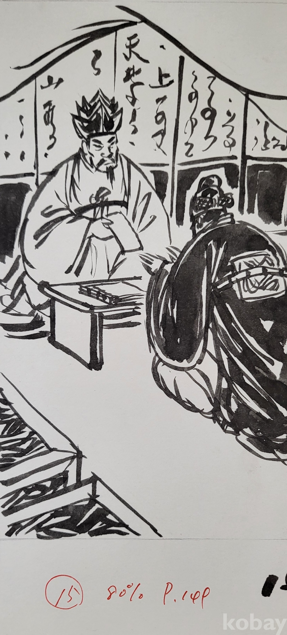 물과 먹으로 만 직접 그려진 수묵화 삽화로 매우 좋습니다,