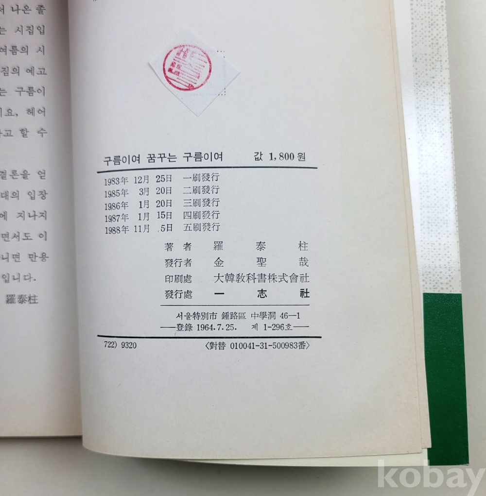 물 품 명 | 나태주 / 구름이여 꿈꾸는 구름이여 / 1988년 / 일지사 |