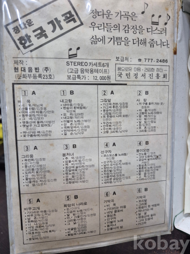 1980년대 국민정서 진흥회 정다운 한국가곡 스테레오 카세트 테이프 6점 일괄 12*6*17