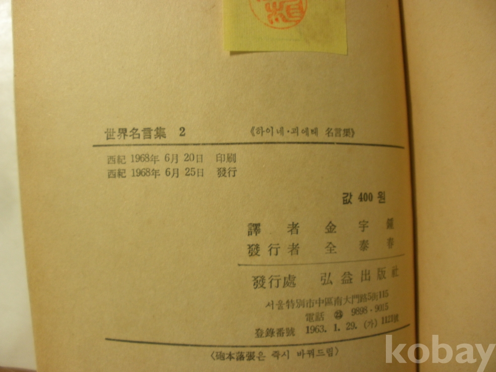 하이네 괴에테 - 명언집 (1968년, 흥익출판사)