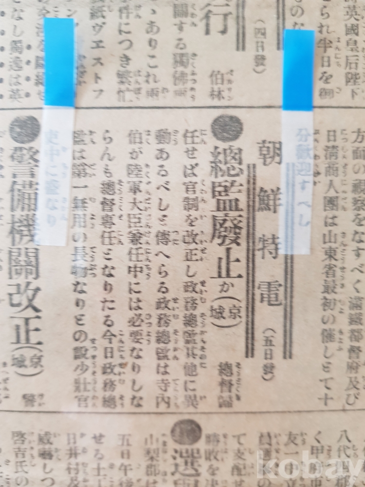 [EE97]*東京日日新聞/1911.10.6./朝鮮特電.총감폐지,경비기관개정,토지매수법 개정(경성)