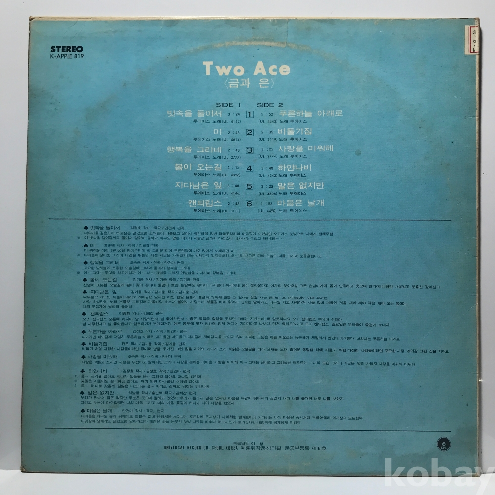 LP 29,300-220 금과은 - 빗속을 둘이서/ 푸른하늘 아래로 . 76 유니버살 자켓 EX 알판 EX