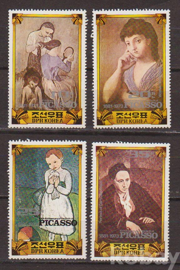 (미술) 북한 1982.3.20 삐까쏘생일 100돐 4완 MNH