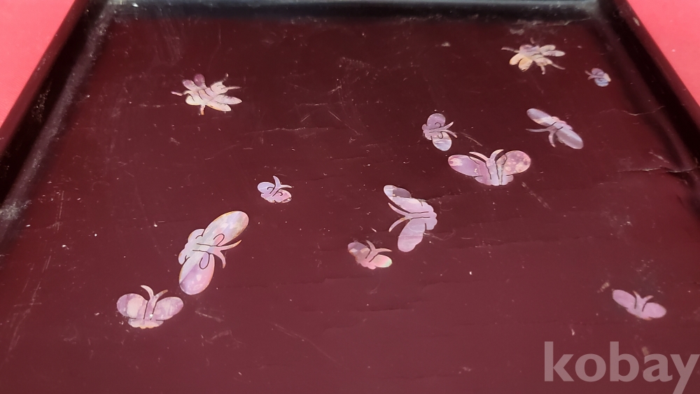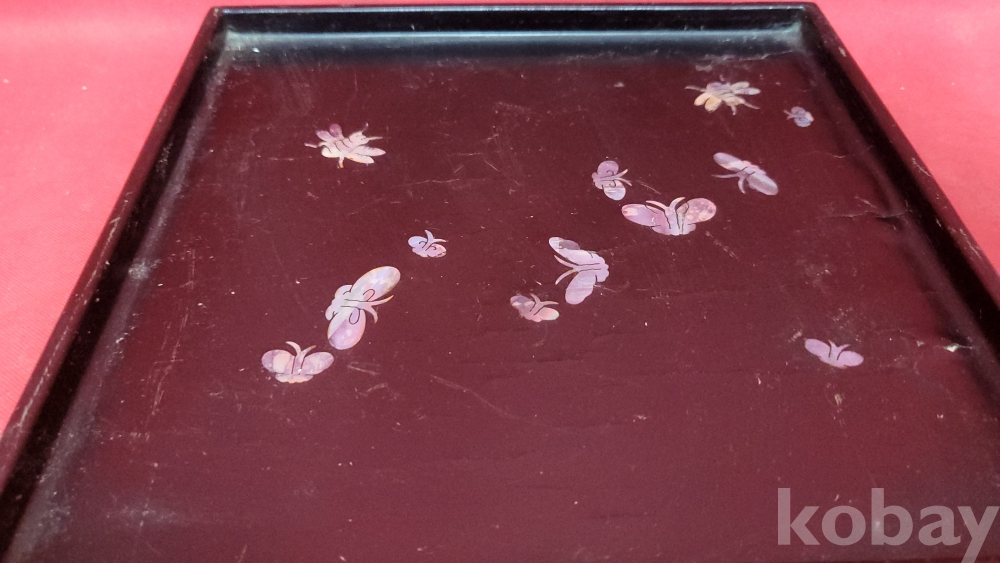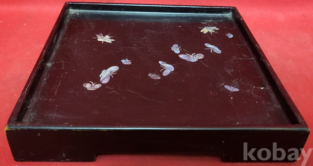 짱짱한 연대를 갖춘 나전칠기 벌과나비 문양 약(藥)쟁반입니다,