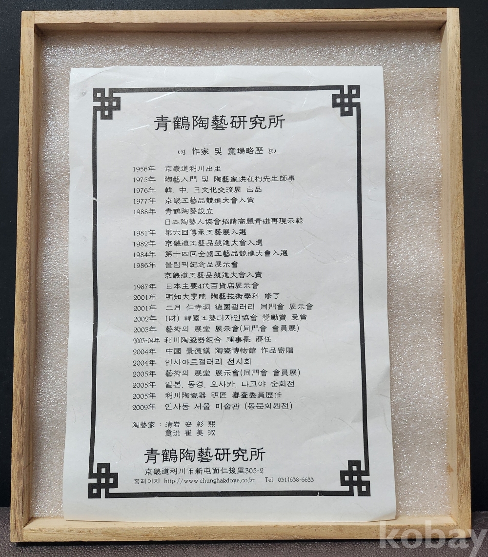 < 청학도예원 > 청암 清岩 안창희 安彰熙 < 미사용 나무 박스 완비 作品 >