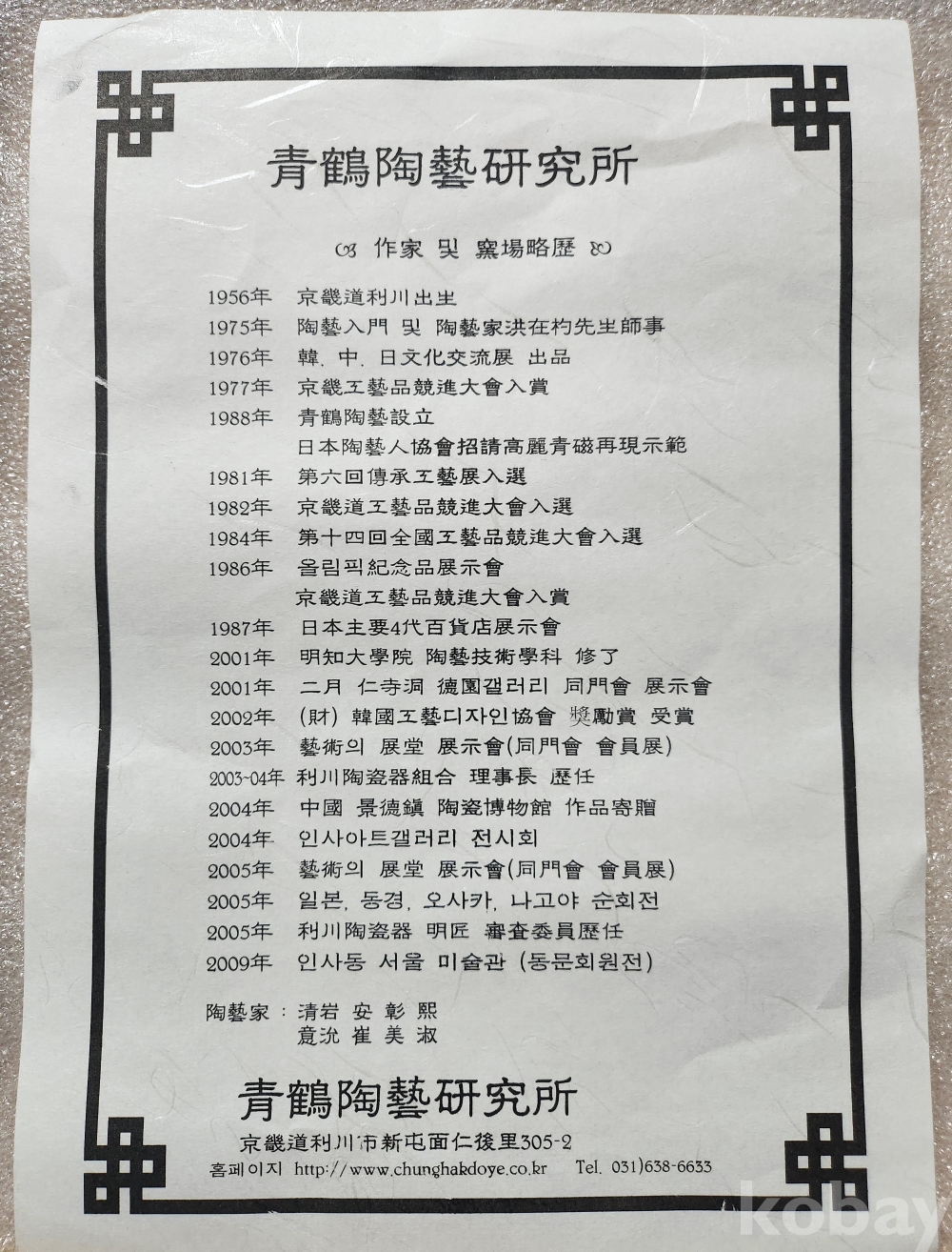 1978 : 청학도예 설립2001 : 명지대학교 산업대학원 도자기술학과 수료