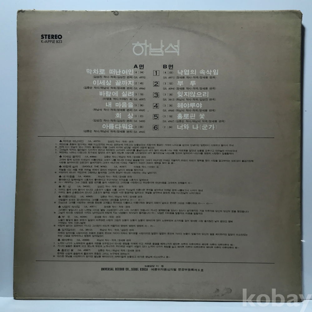 LP 29,300-192 하남석 - 막차로 떠난 여인 . 76 유니버살 자켓 EX 알판 EX