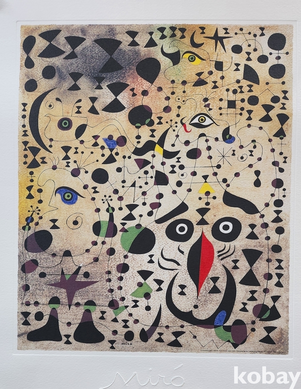 스폐인의 유명 서양화가 로안미로 사인이 보이는 압인 판화입니다,