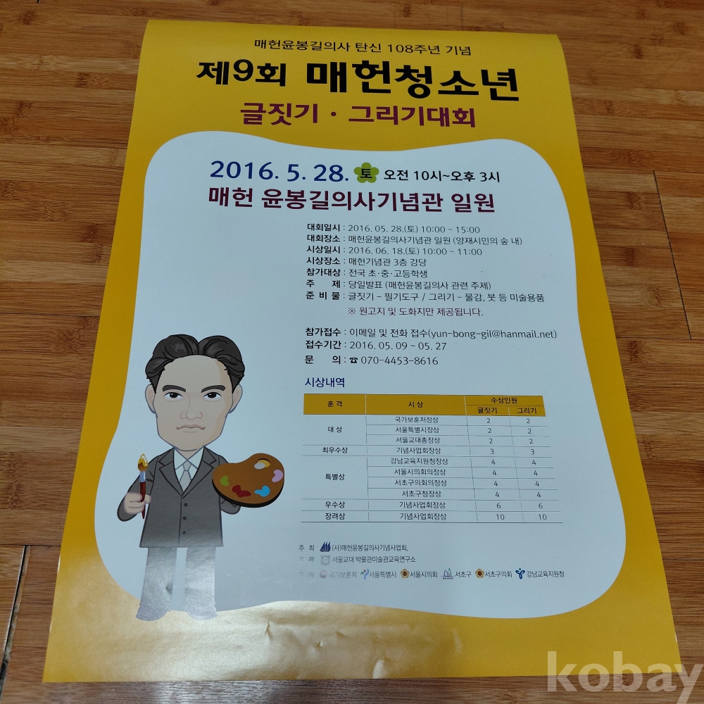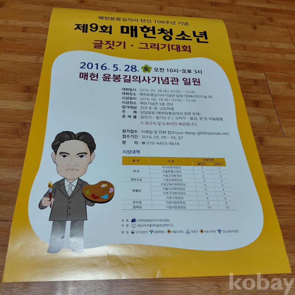 매헌 윤봉길 의사 탄신 100주년기념 제9회 매헌 청소년 글짓기 ㆍ그리기대회 홍보포스터 한장 올려드립니다