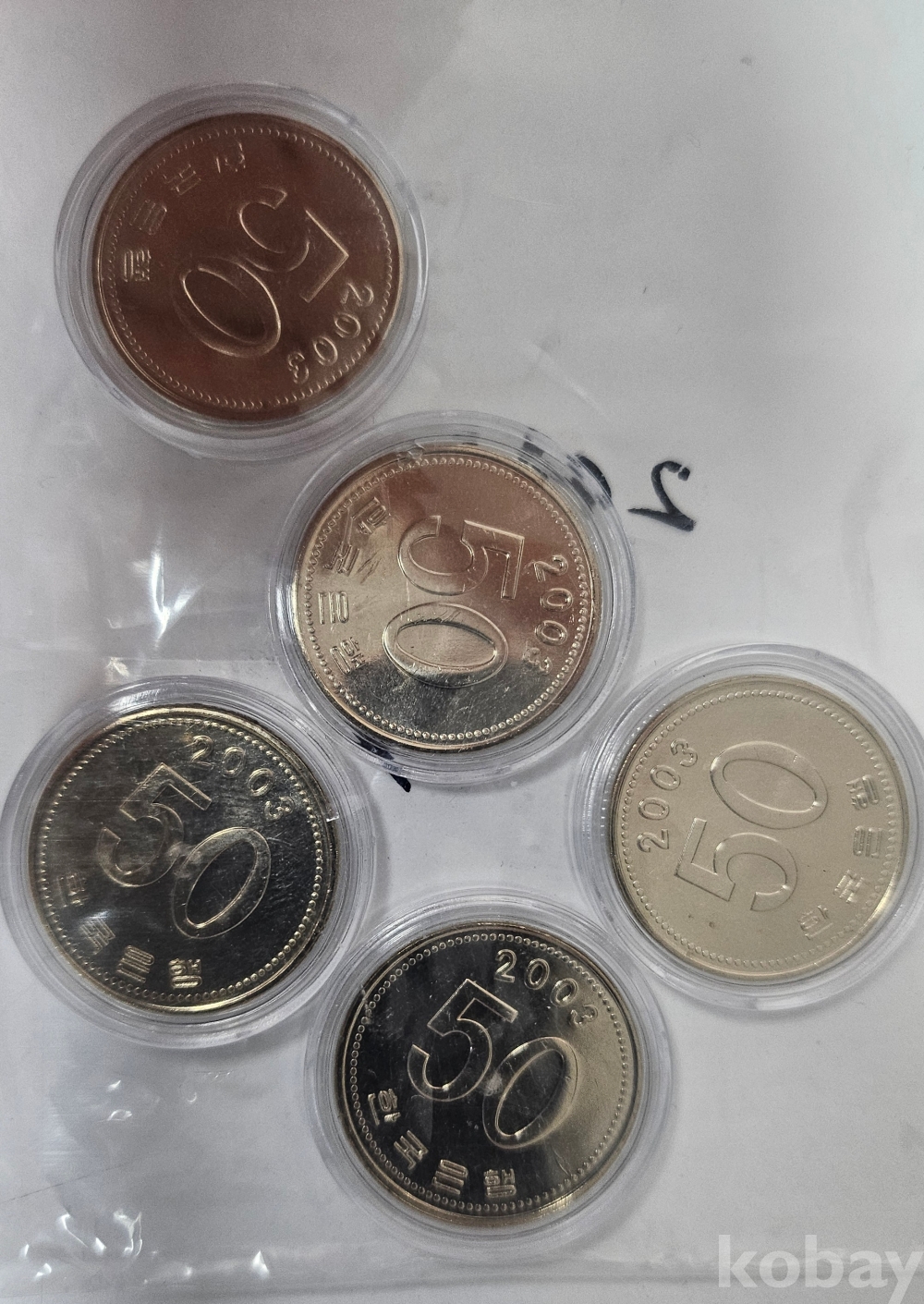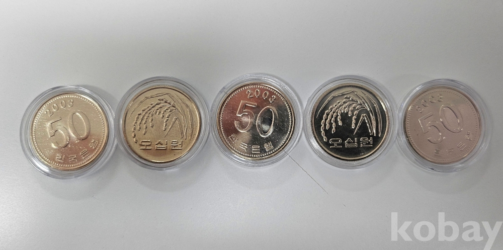 한국은행 2003년 50원 5개 미사용