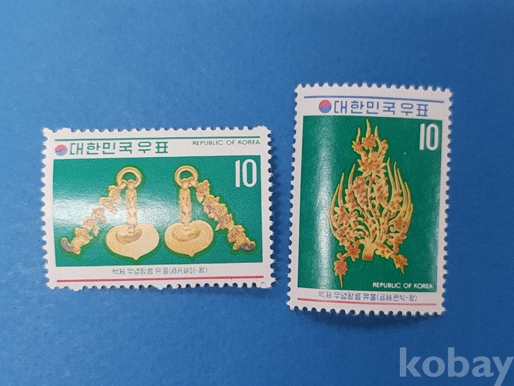 **** 백제 무녕왕릉 유물*금귀걸이-왕,금제관식-왕/대한민국 우표