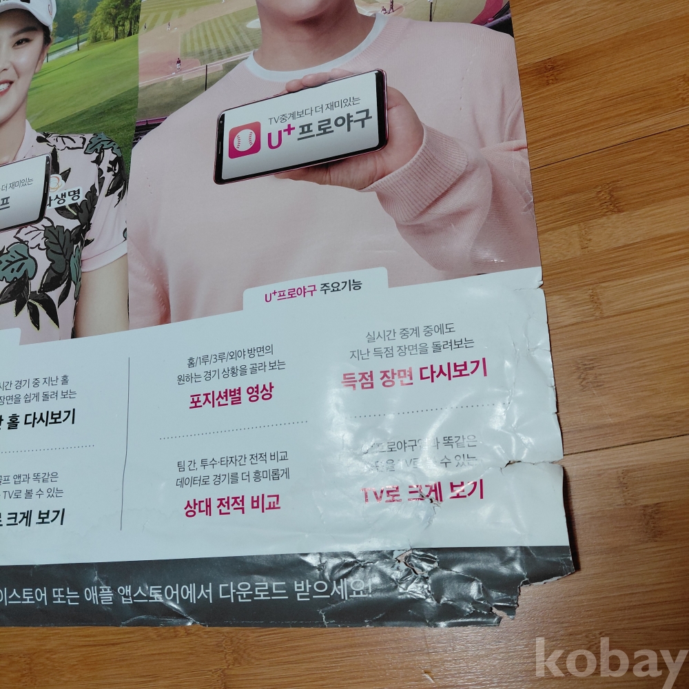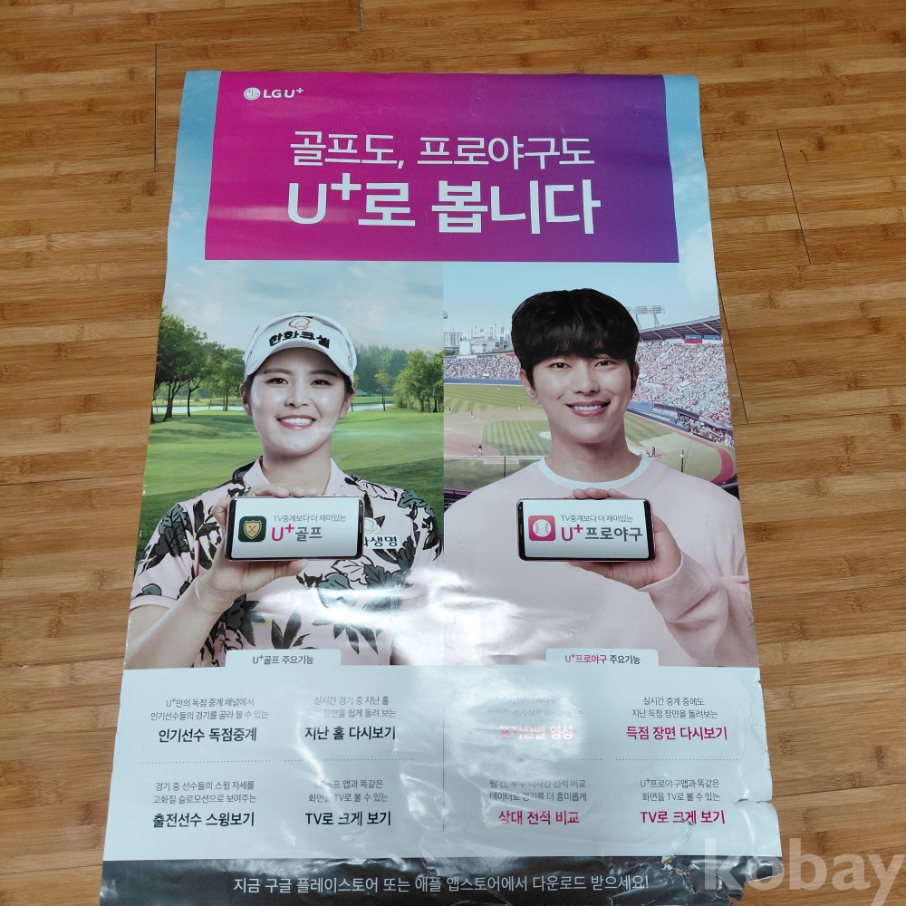 LGS+ 골프도ㆍ프로야구도U+로봅니다 홍보 대형포스터 한장 훼손된 곳있음 사진참고 올려드립니다