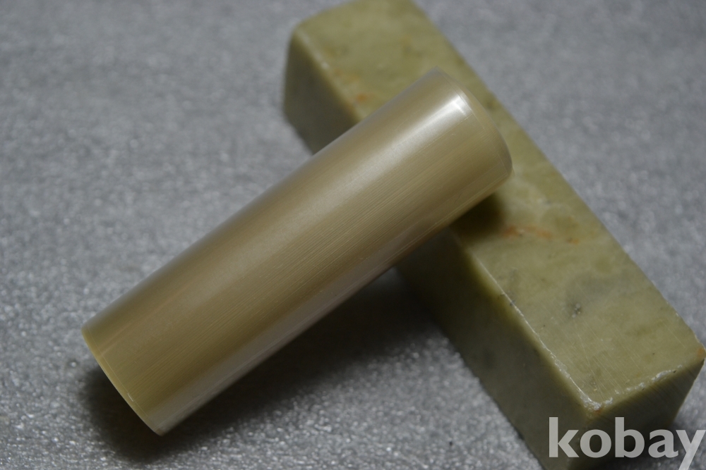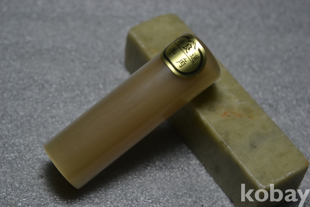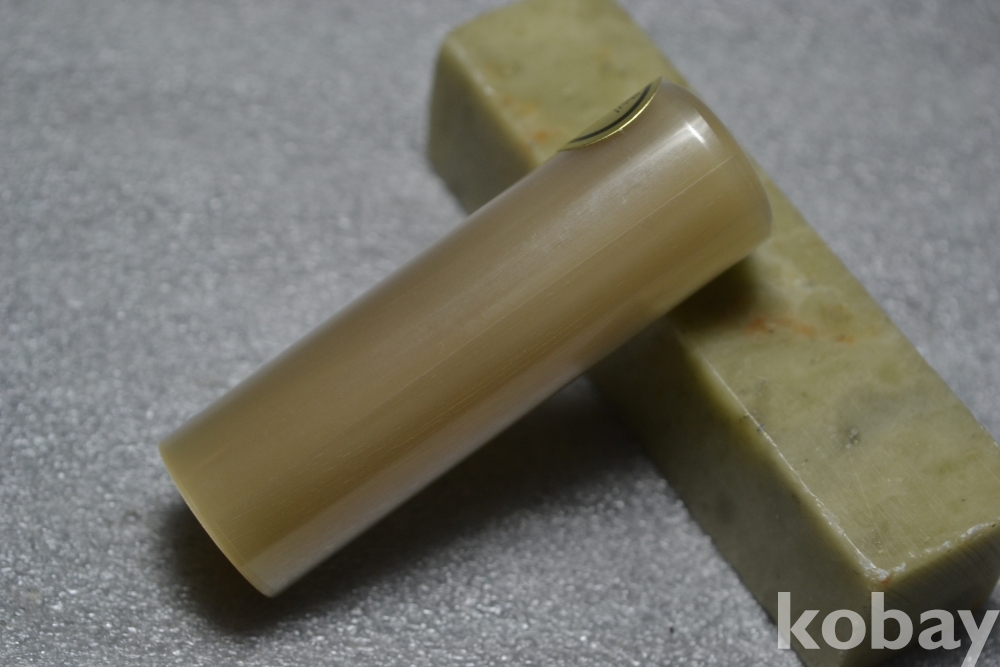 색상과 문양이 매우 아름다운 최고급 오란다 백수우(白水牛) 물소뿔 도장 작품 입니다.