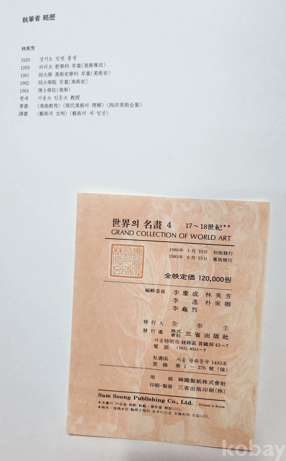 1983년 발행된 세계의 명화 17ㅡ18세기 편으로 크기가 큰 칼러판 화보책입니다,