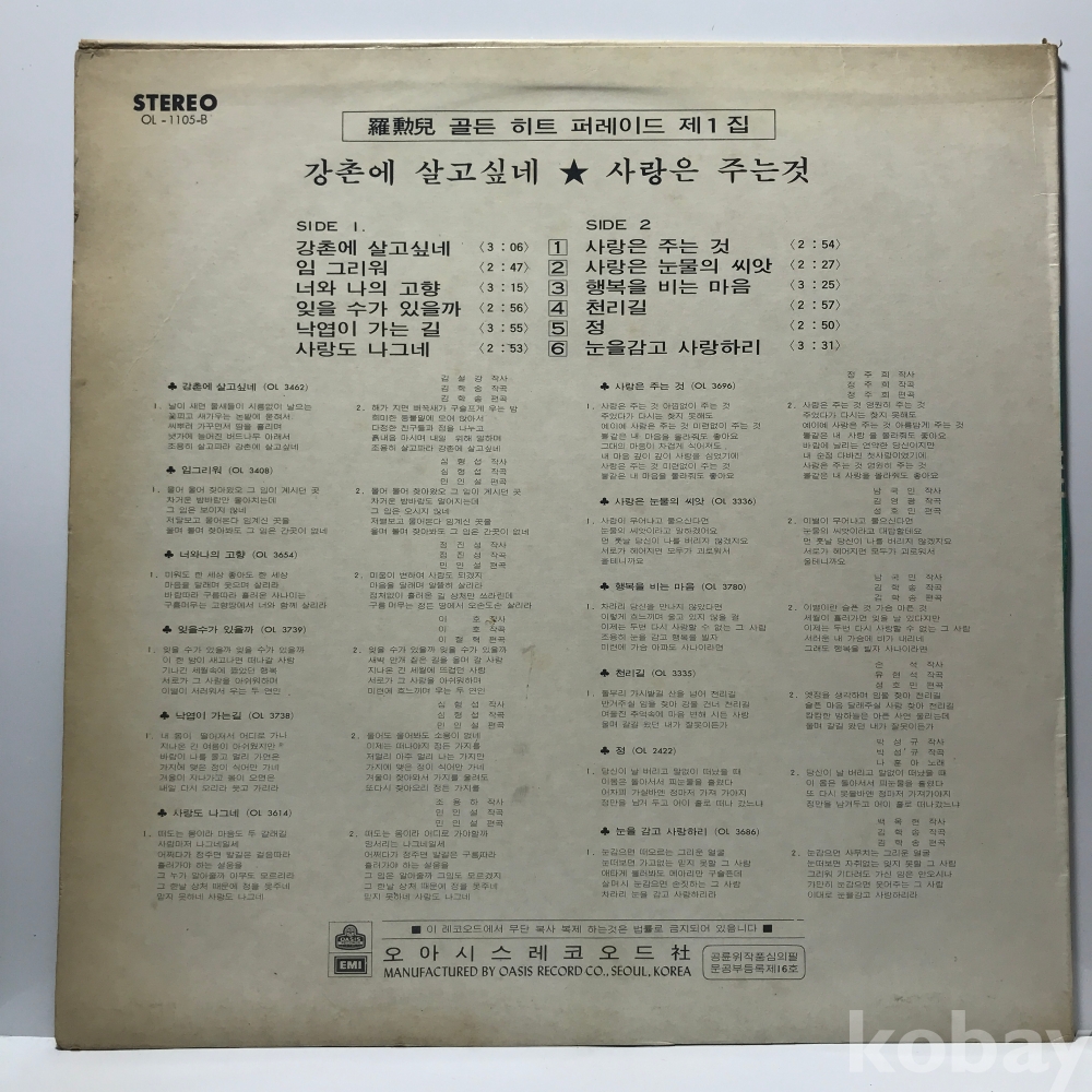 LP 29,300-164 나훈아 - 강촌에 살고싶네/ 사랑은 주는 것 . 72 오아시스 자켓 EX+ 알판 EX