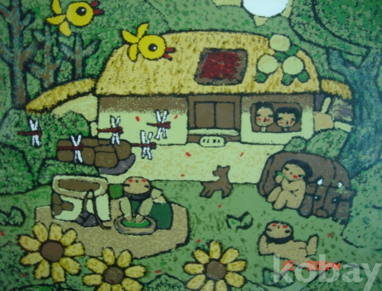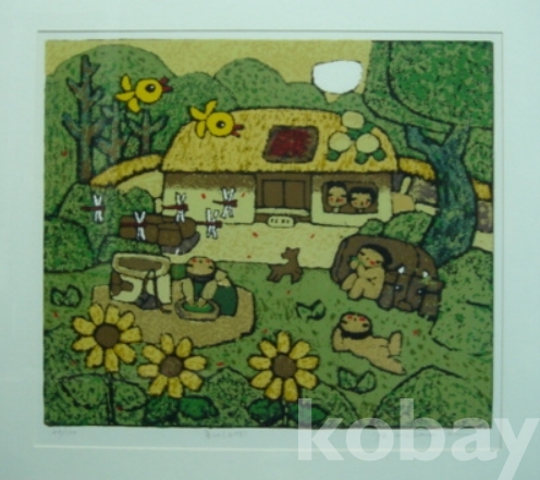 김길상의 판화 “童心(고향)”(49×55)입니다.