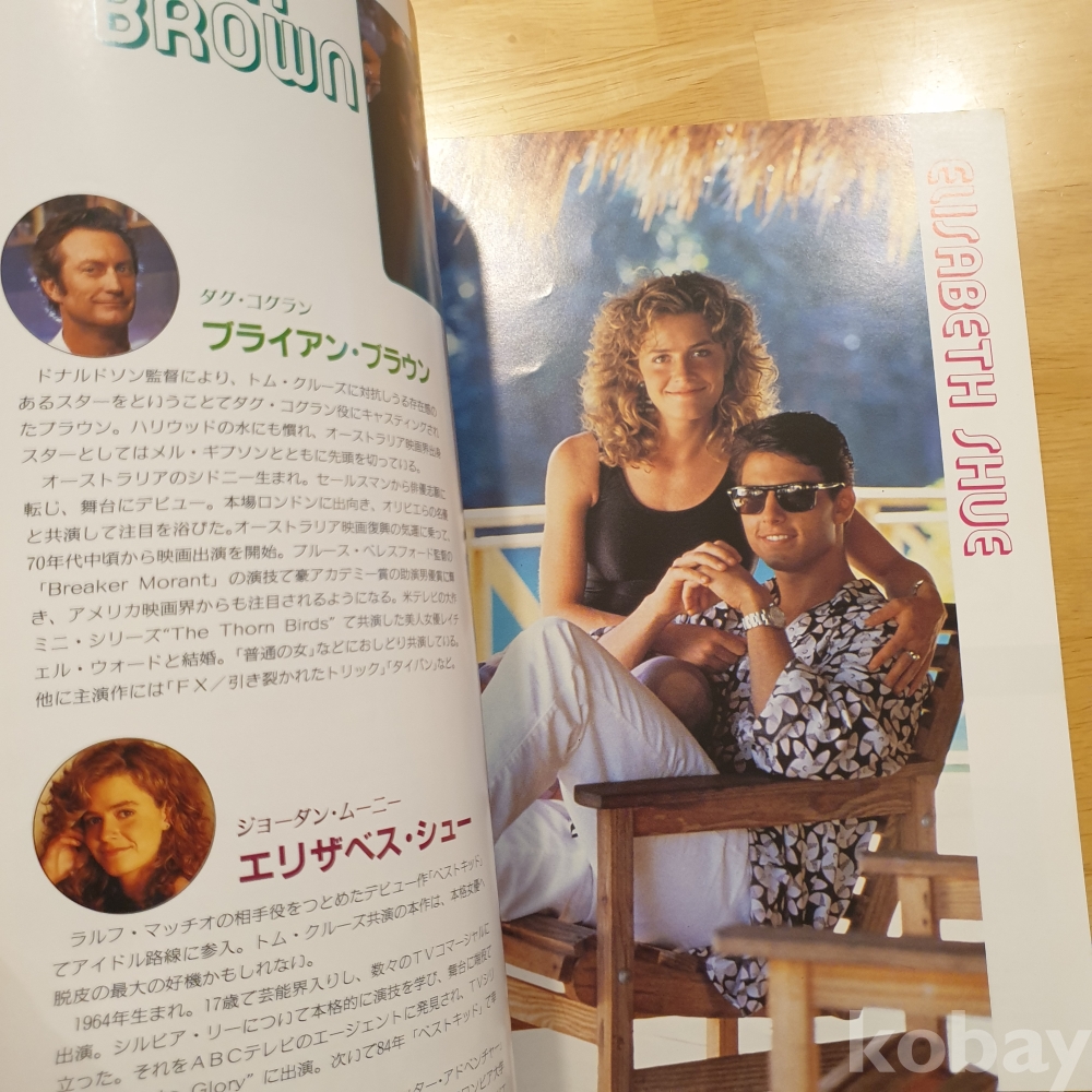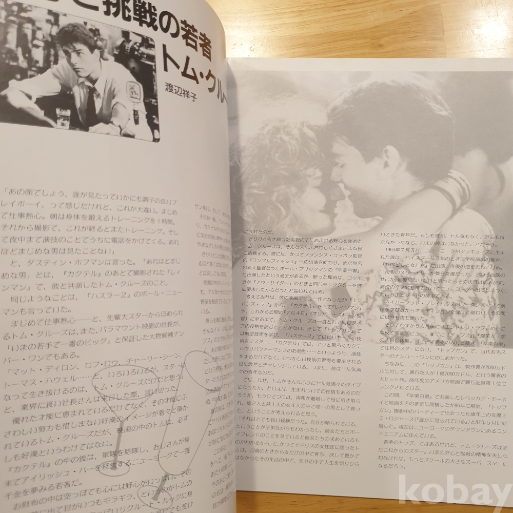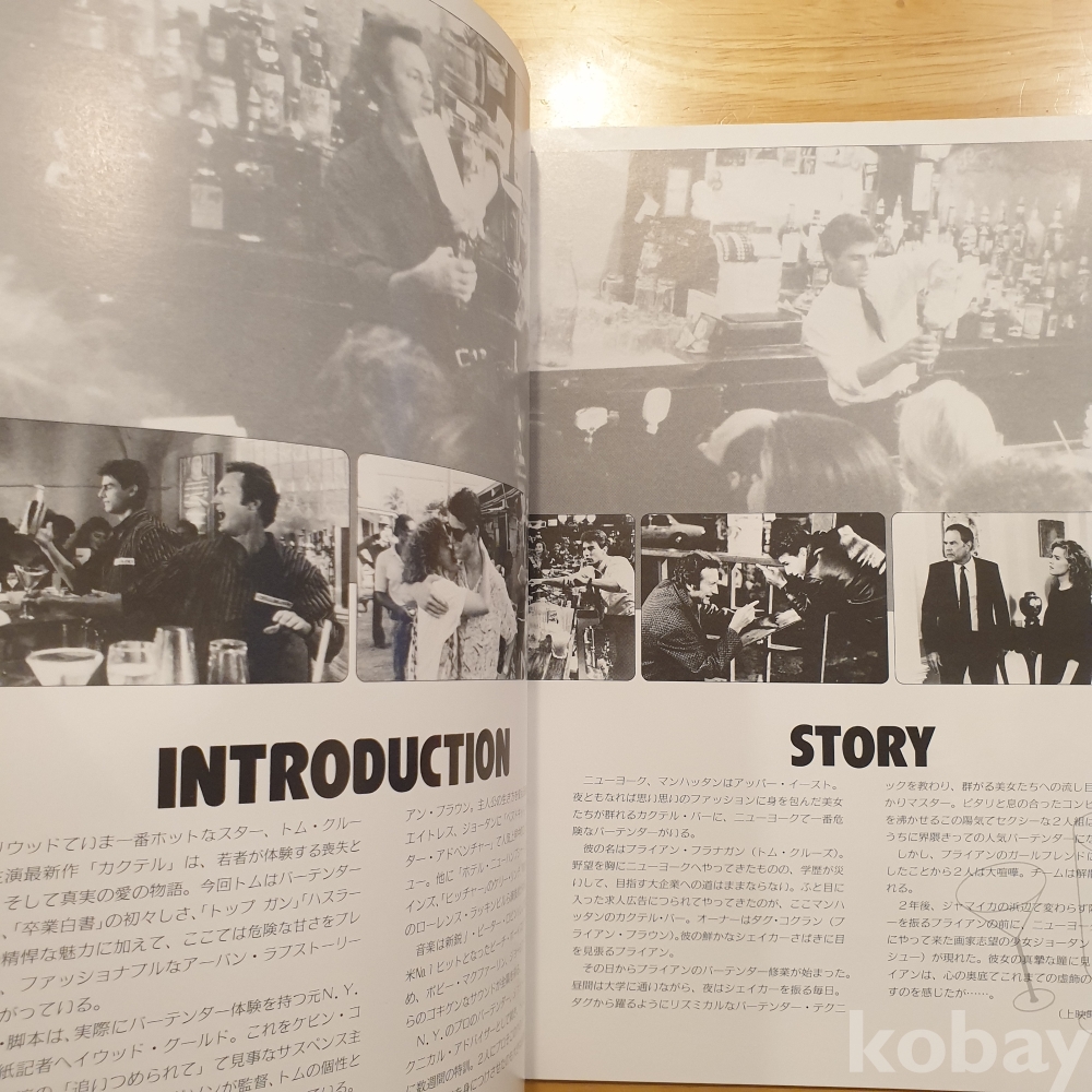 톰 크루즈 주연의 1988년 영화 <칵테일> 일본영화팜플렛입니다. 일본에서 상영 당시 유료로 판매했던, 소책자형식의 팜플렛으로 일본어로 영화속 줄거리나 캐릭터, 장면에 대한 소개 등이 담겨있습니다.