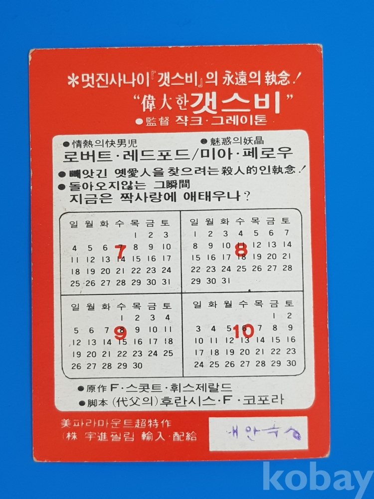 **** 영화카드*위대한 갯스비/로버트 레드포드,미아 페로우 주연/대안극장